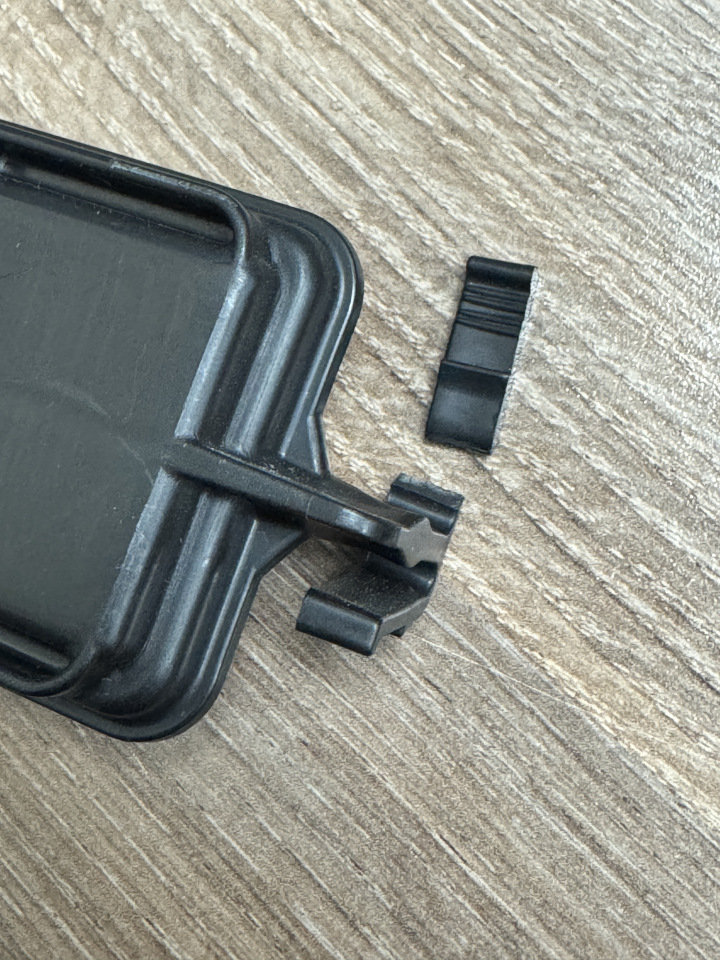 왼쪽에 걸쇠를 걸고 오른쪽을 끼우려는 순간, 아래 사진처럼 플라스틱 커버가 부러져 버렸습니다.