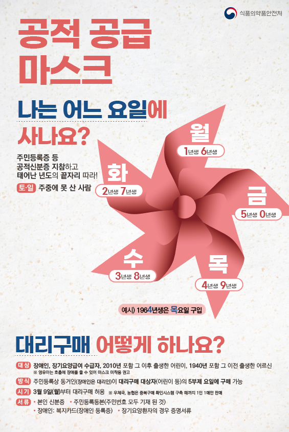 오늘부터 공적마스크를 출생 연도 끝자리에 따라 5부제로 판매합니다.