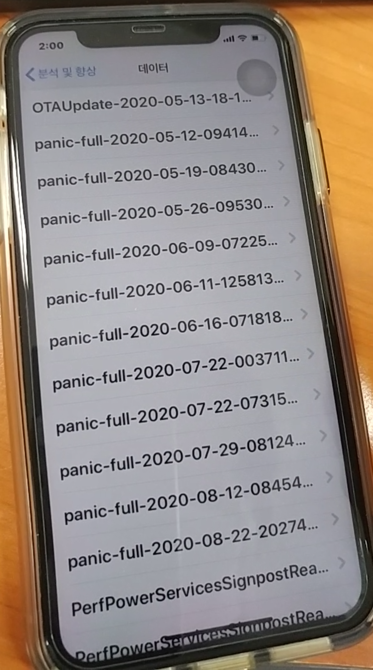 5월 이전에도 재부팅 된적이 있었던것 같은데 지워진 것 같습니다. 로그가 오래 되거나 iTunes 연결을 하면 로그가 지워지기도 한다고 합니다.