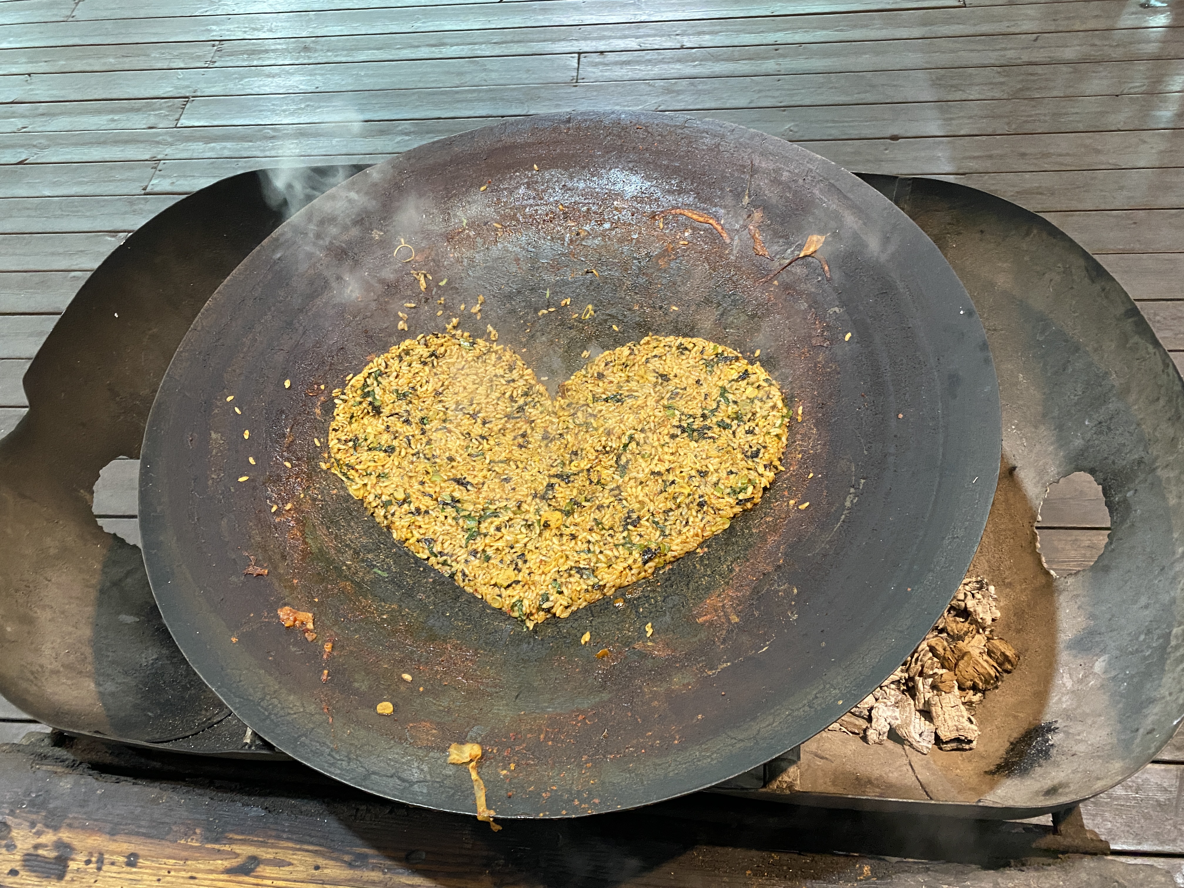 드디어 음식이 나왔습니다. 타고 남은 장작이 있어서 먹는 내내 따뜻한 음식을 먹을 수 있습니다.