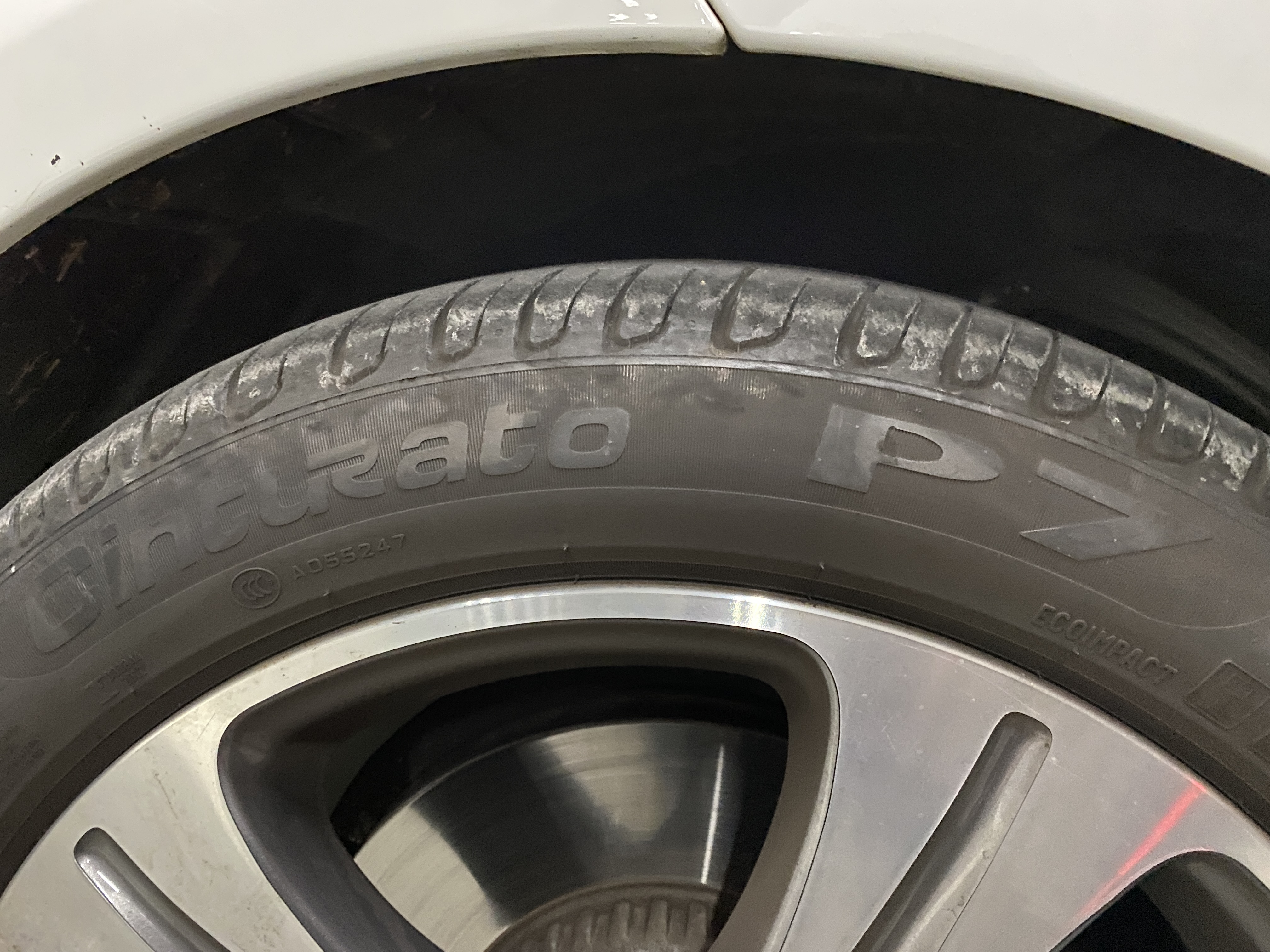 기존 타이어는 피렐리 신투라토 P7 출고 타이어로 25,000km 정도 주행했습니다. 런플랫타이어로 썸머 타이어입니다.