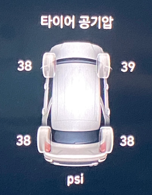 공기압은 아래와 같습니다. 컴포트 모드를 사용하고 ISG는 사용하지 않았습니다. 시동 후, 바로 껐습니다.