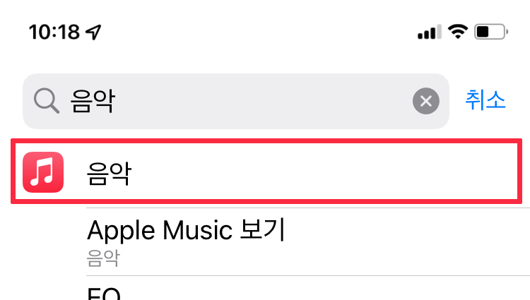 "음악" 설정 메뉴는 약간 아래로 스크롤 해서 내리면 찾을 수 있습니다. 상단의 검색 기능을 이용하면 보다 쉽게 찾을 수 있습니다.