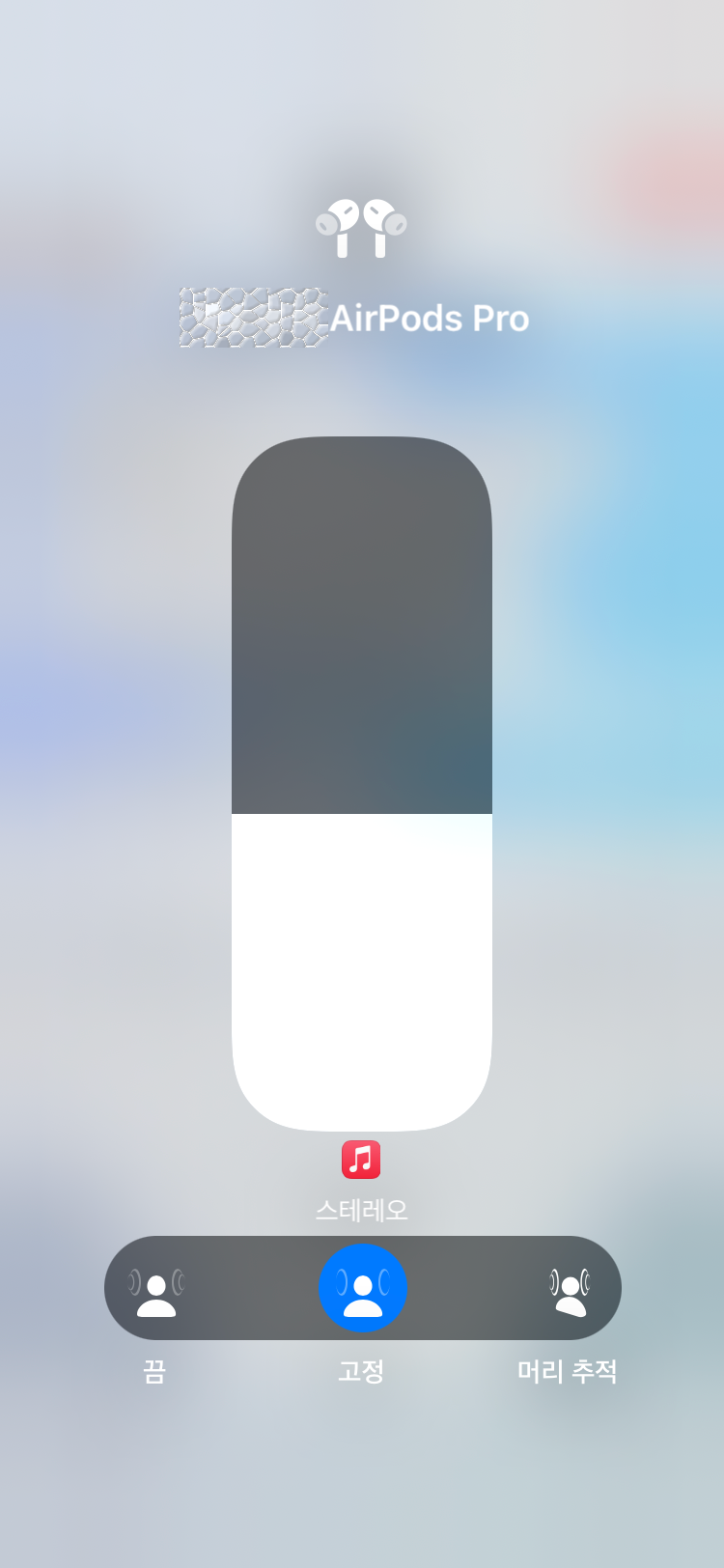 에어팟 프로 설정에서 공간음향 모드를 고정 혹은 머리 추적으로 설정 할 수도 있습니다.
