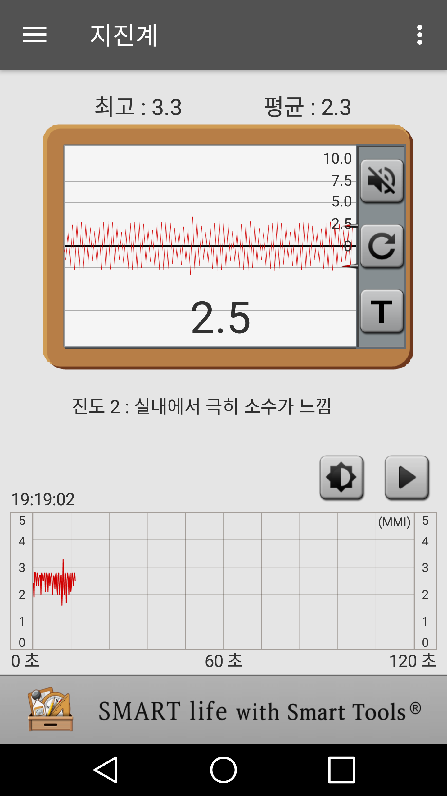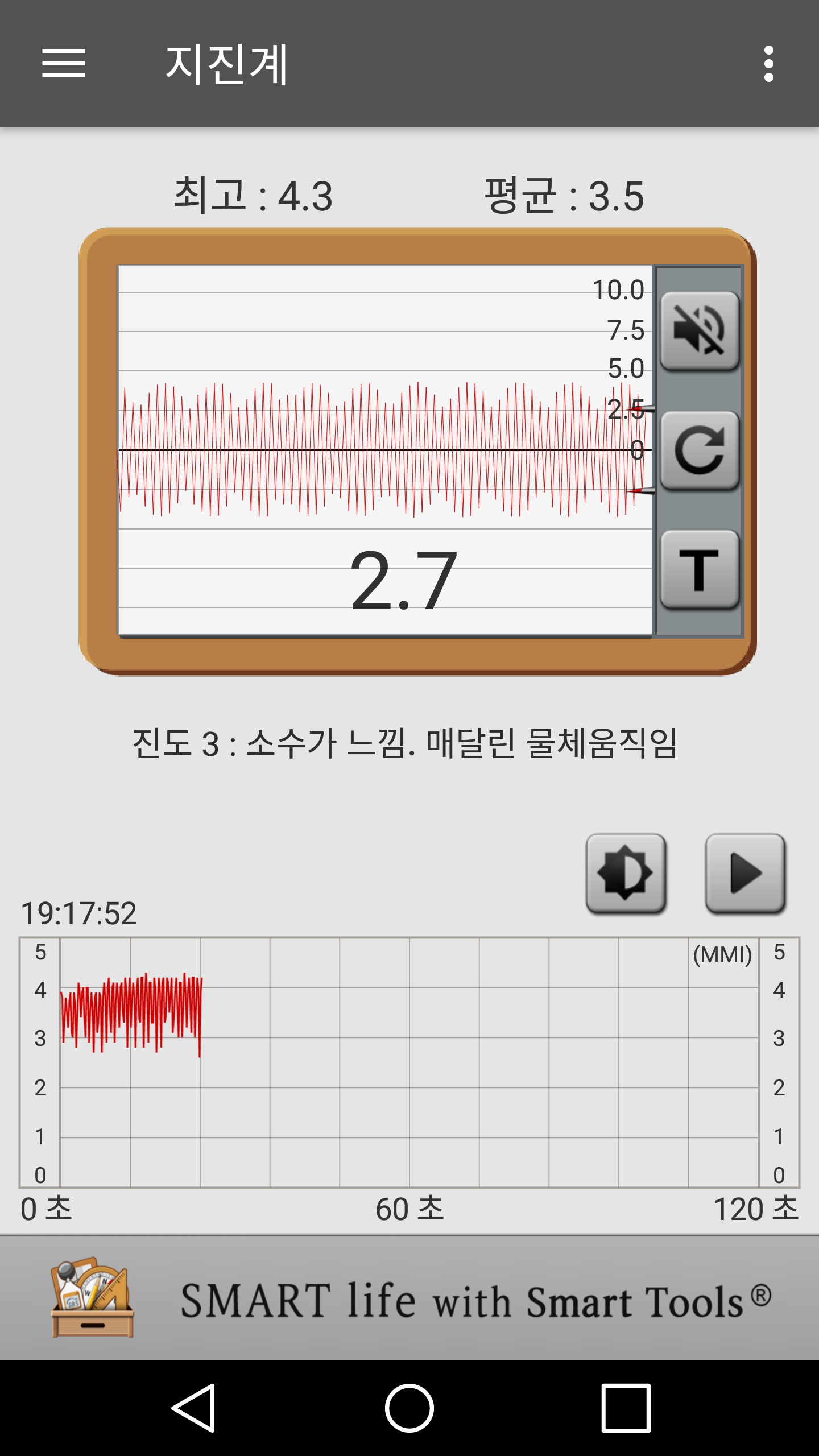 지진계 어플의 결과입니다.