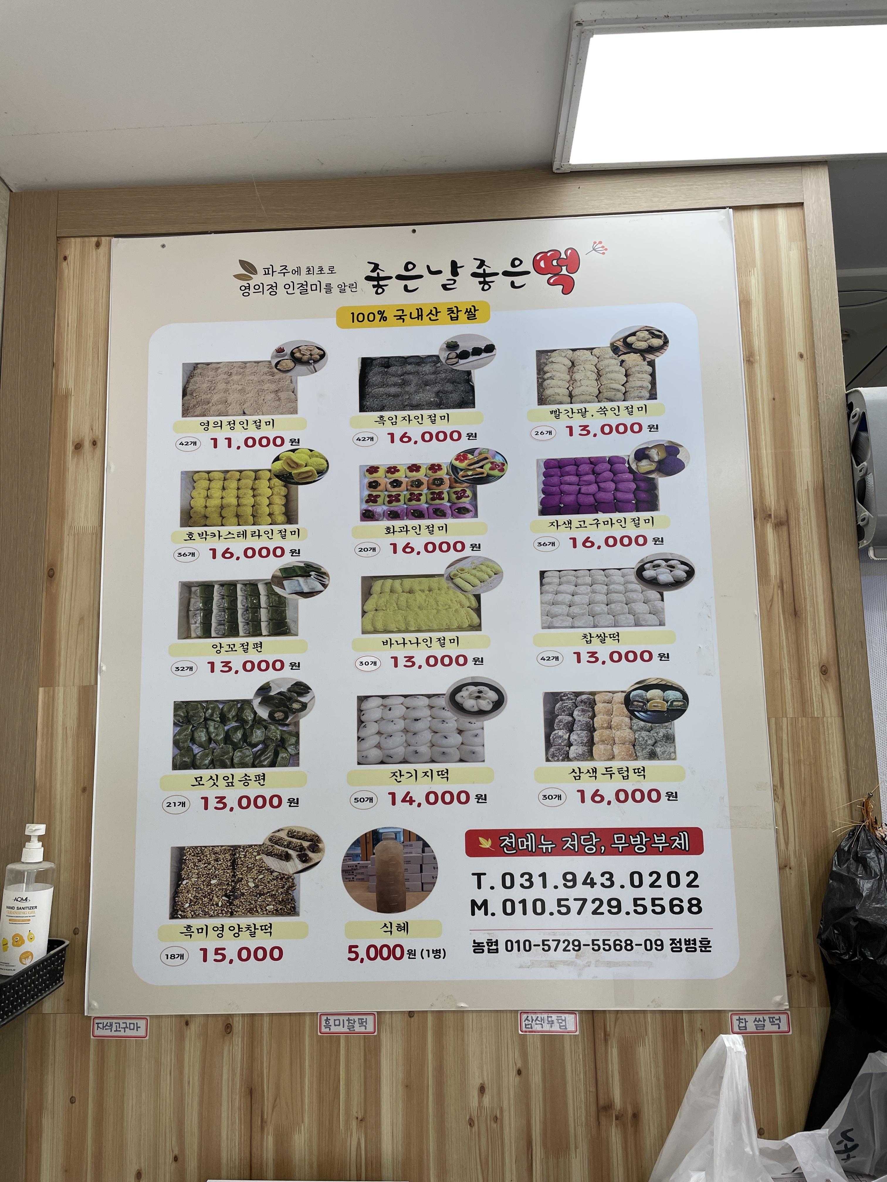 다양한 떡을 팔고있습니다. 찹쌀은 100% 국내산이라고 합니다.