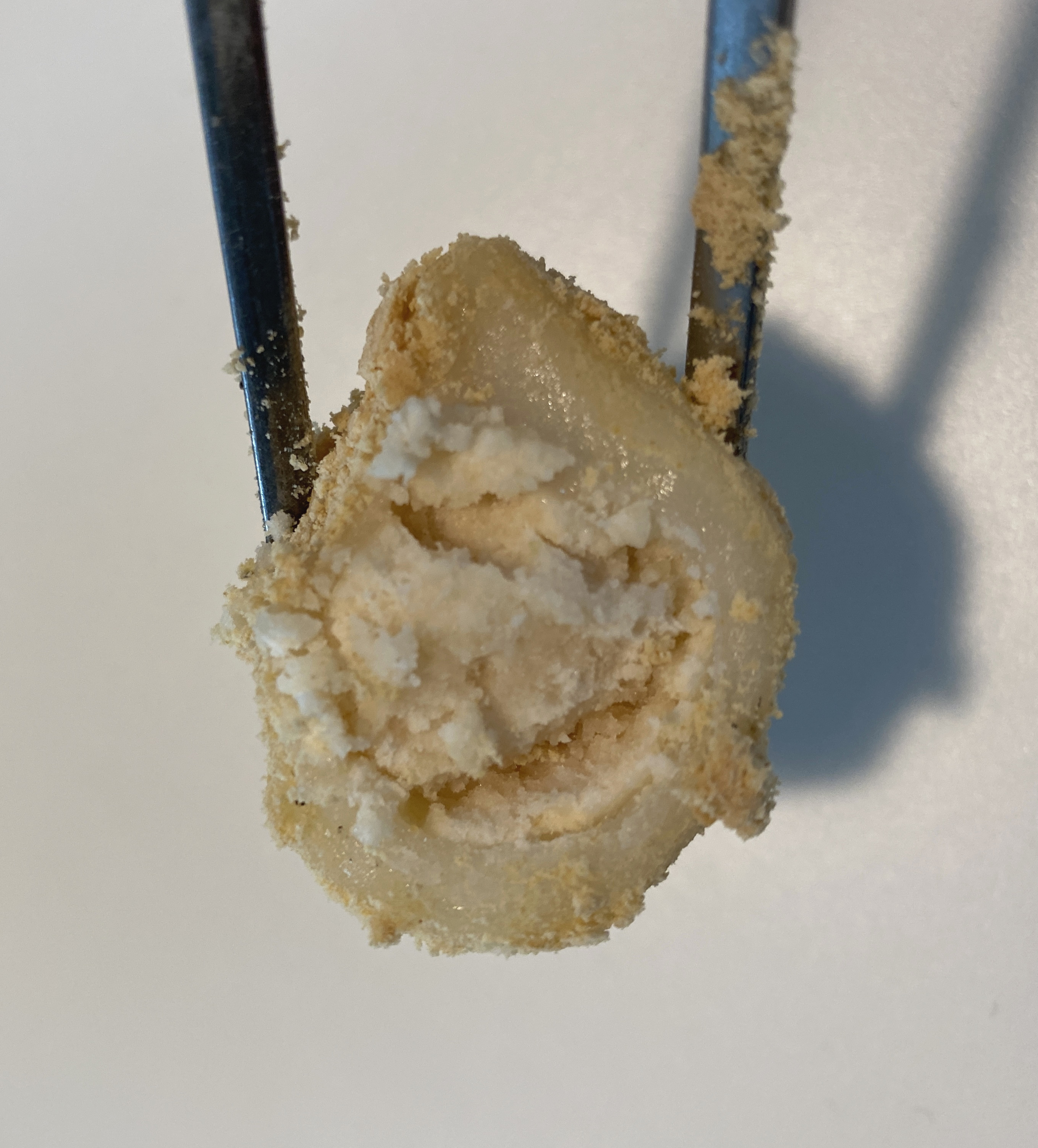단면을 잘라보면 아래와 같이 콩가루로 만든듯한 앙꼬가 들어가 있습니다.
