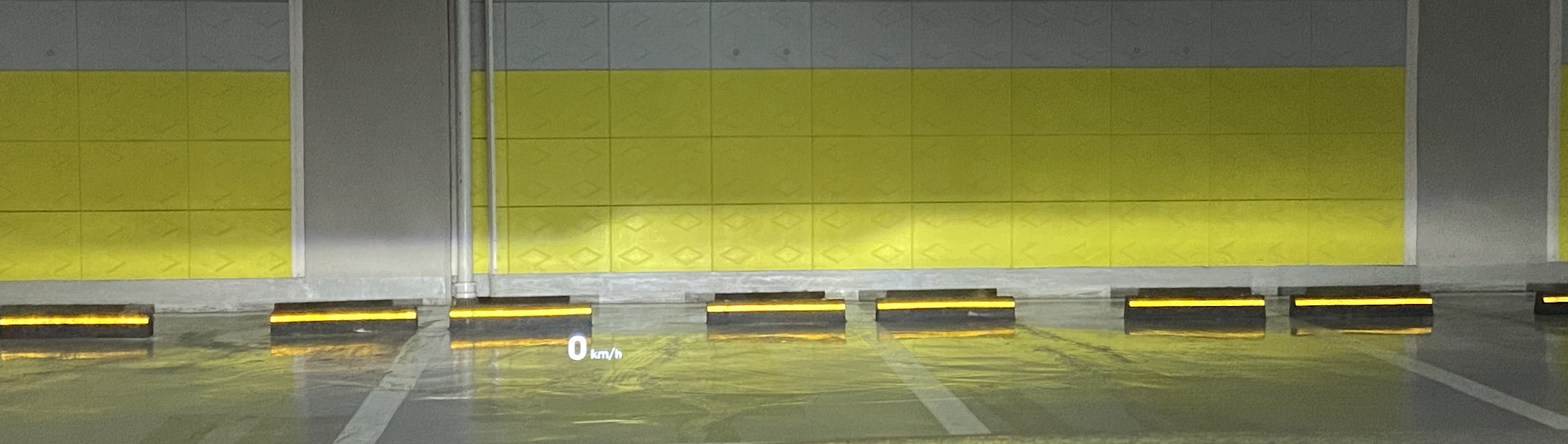 노란 벽면의 몇번째까지 칸까지 비추는지 보시면 됩니다. 아래에서 두번째 칸의 2/3 정도 지점까지 비춰지고 있습니다.