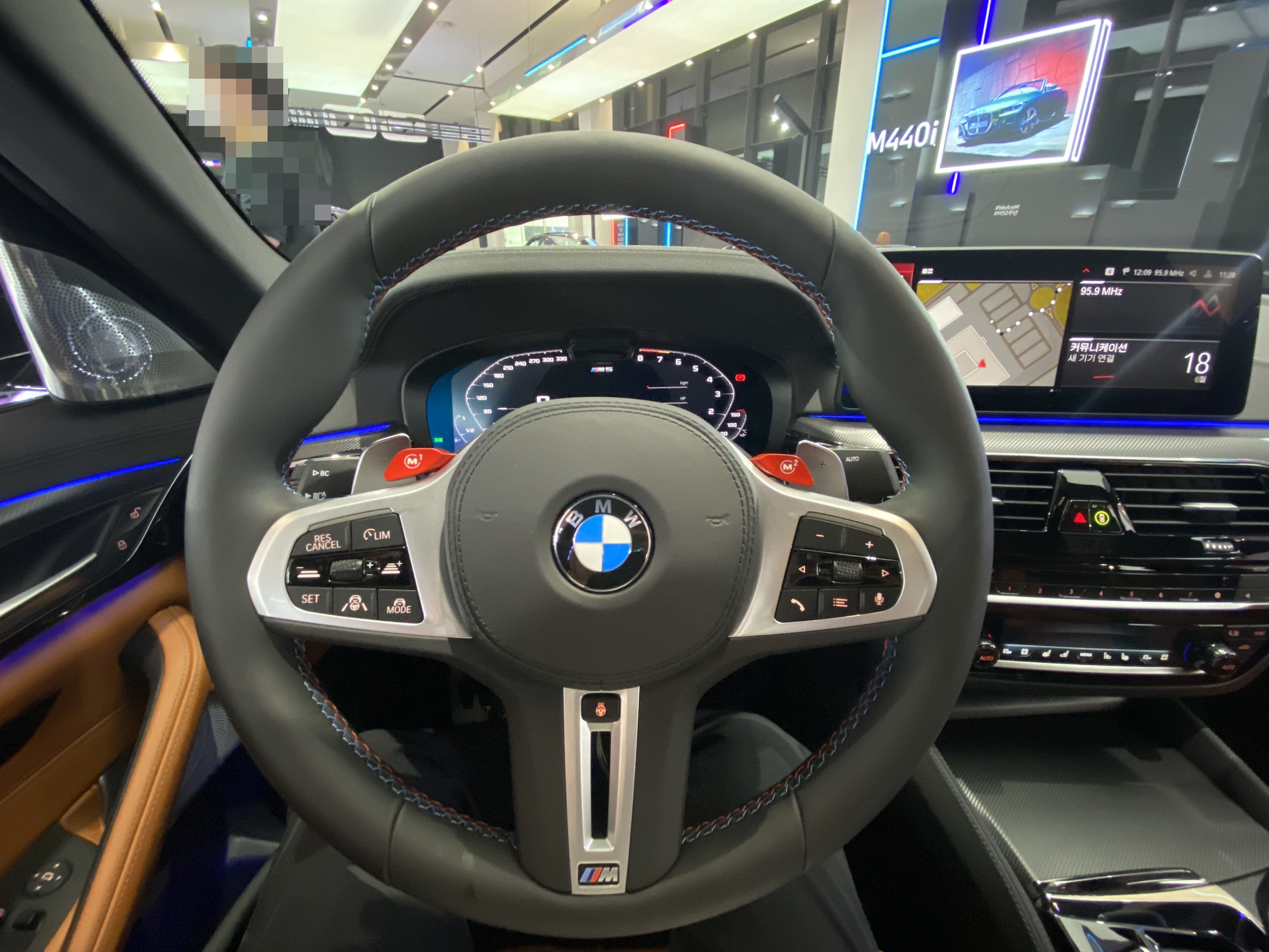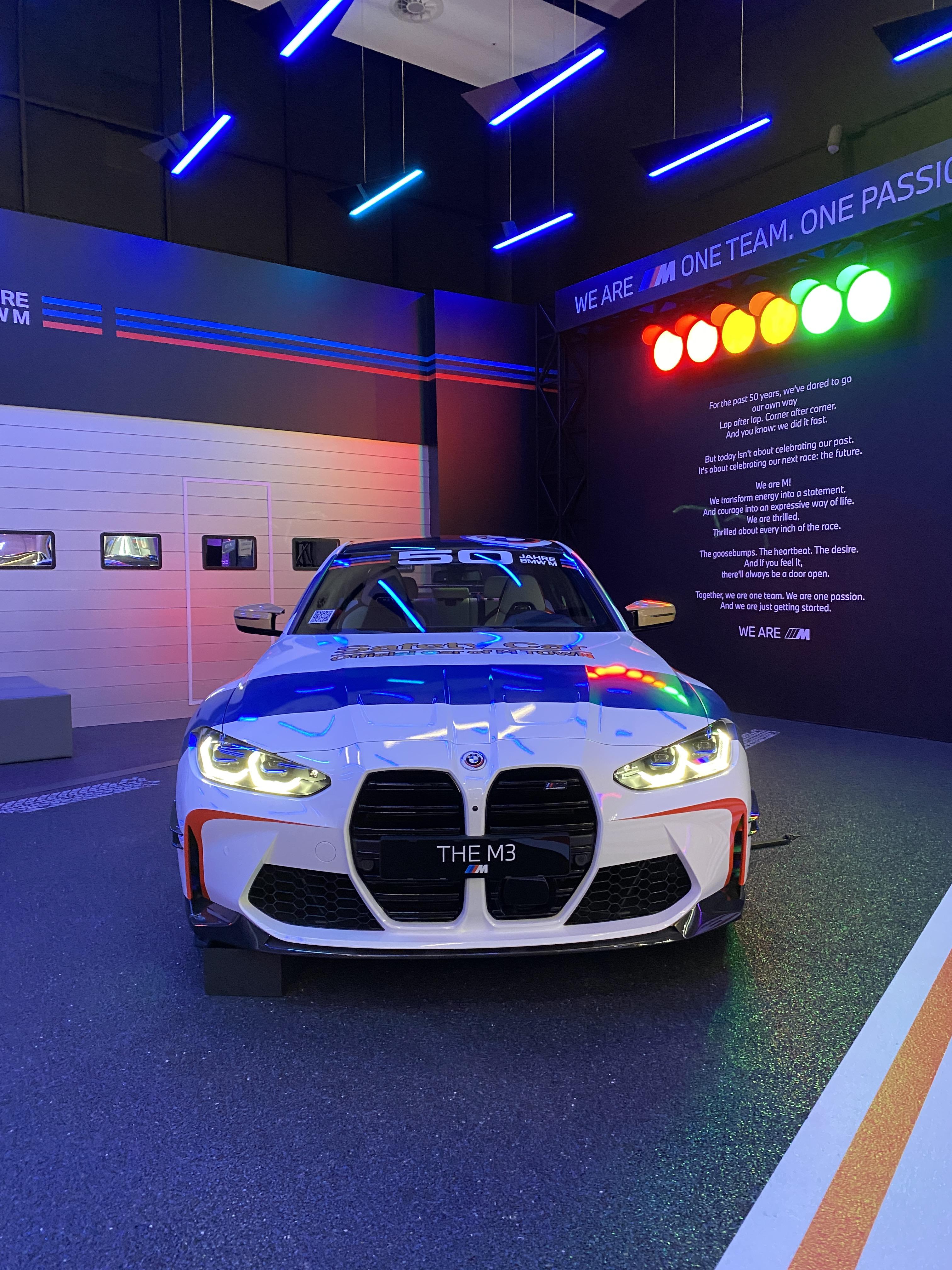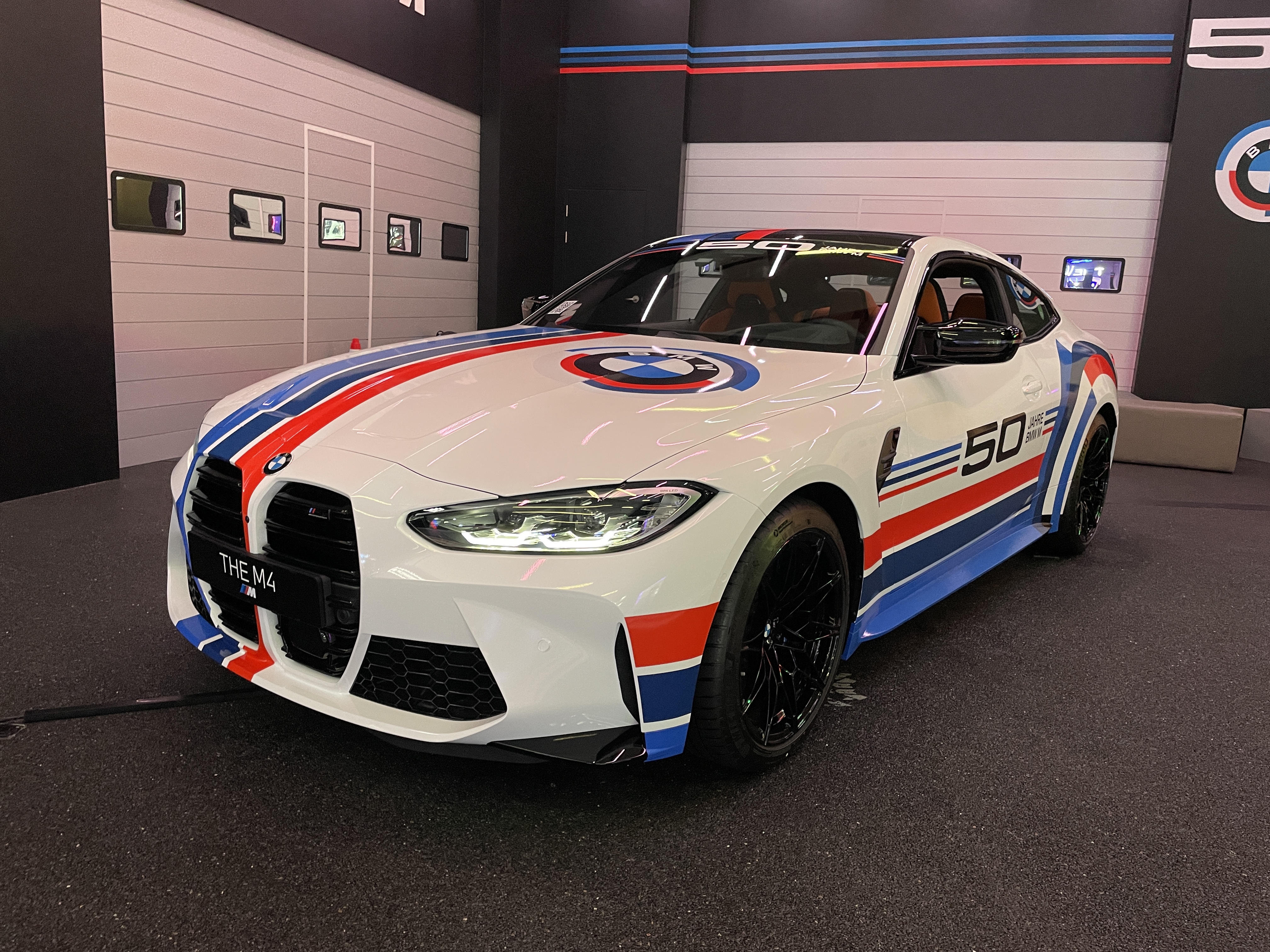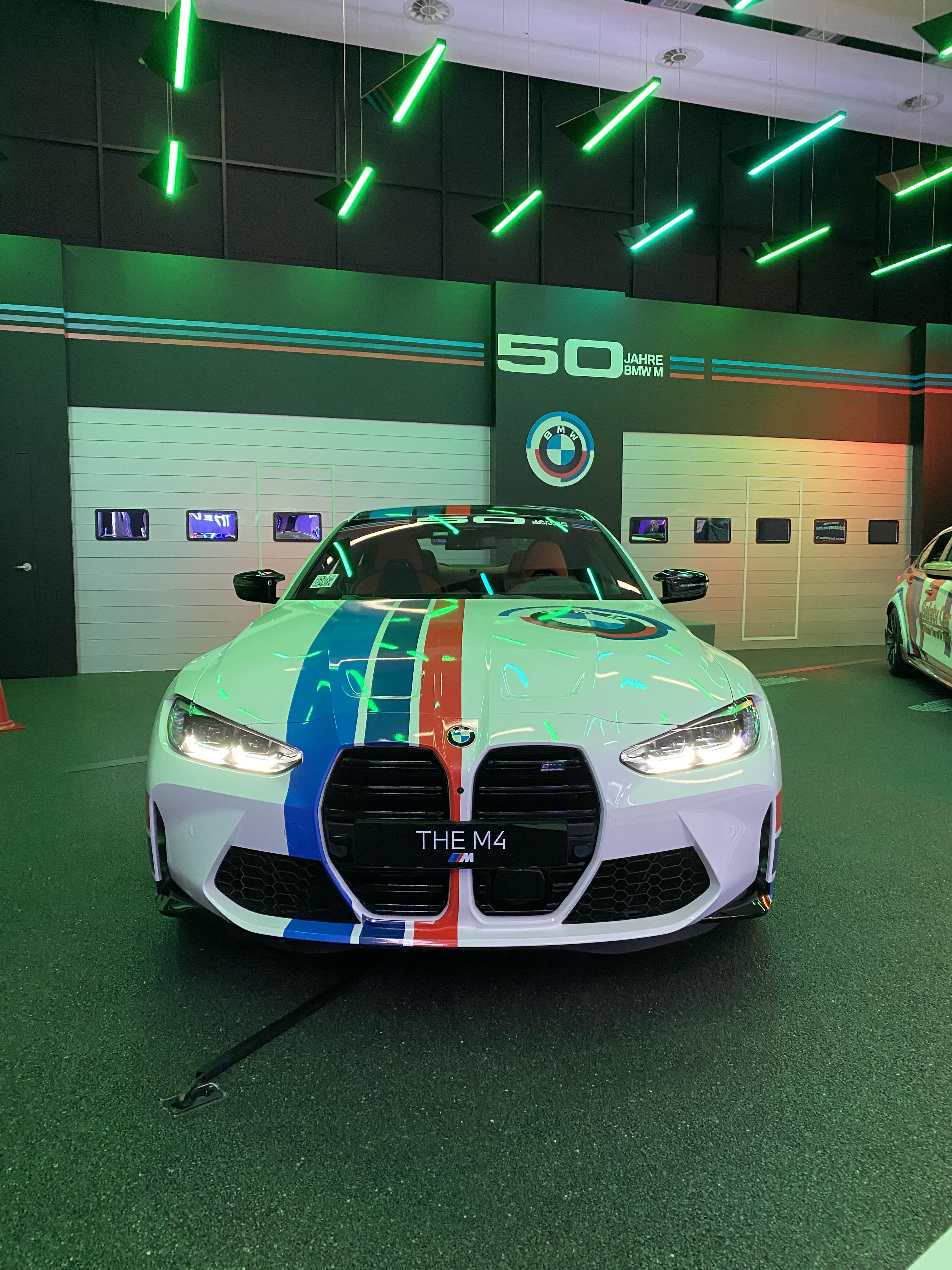 M Street 에 있는 50주년 기념 랩핑을 한 M5 차량입니다.