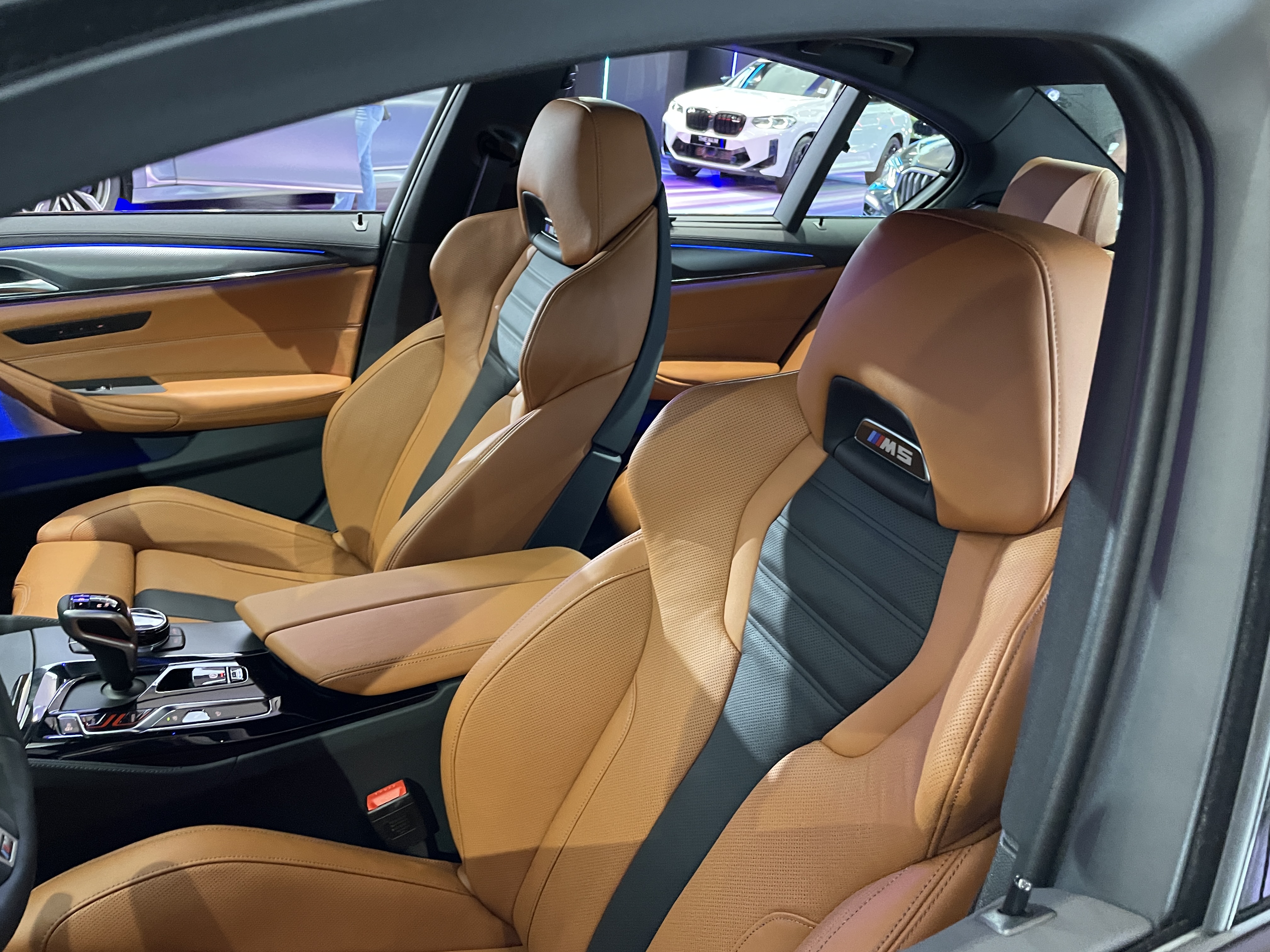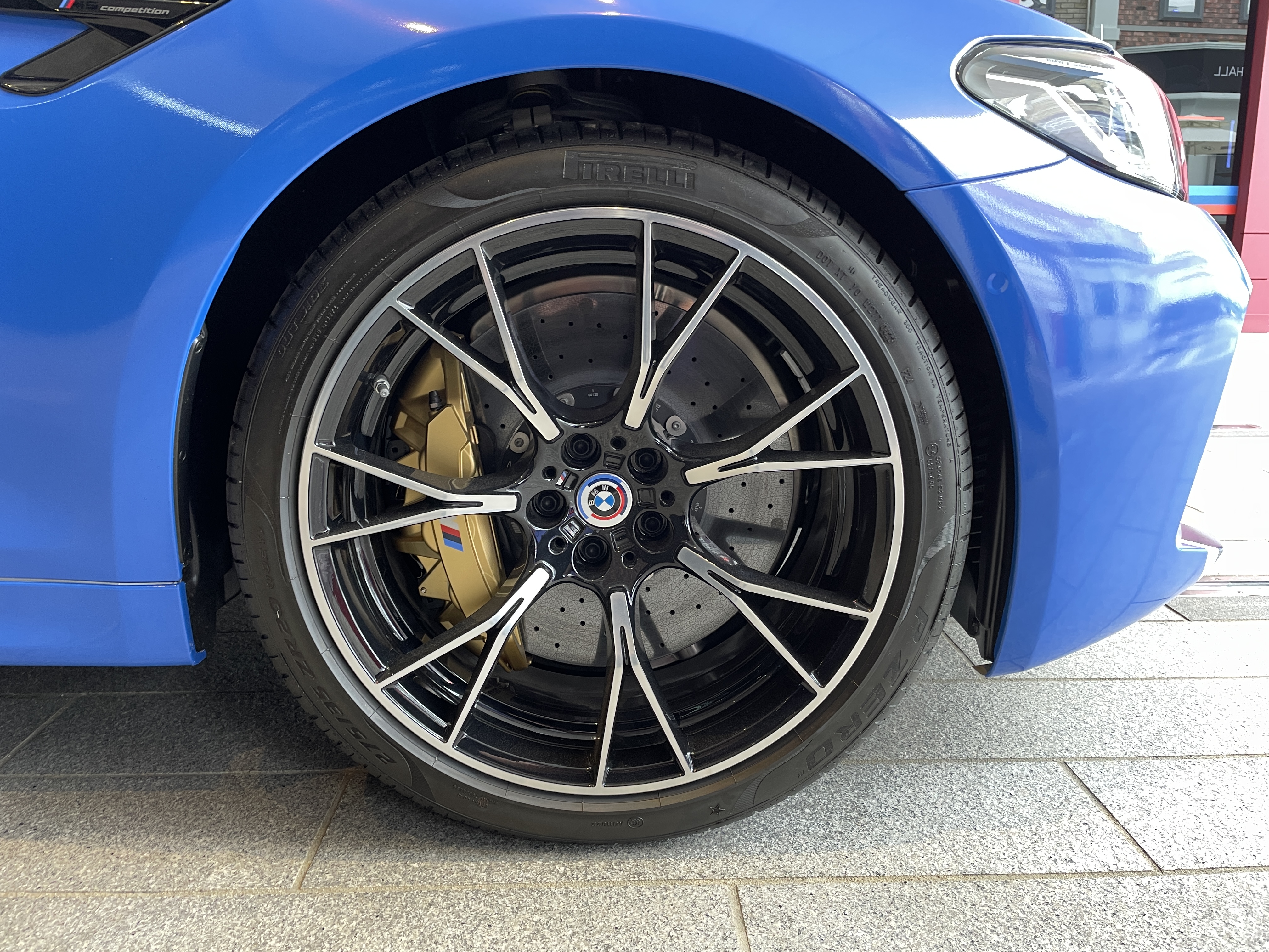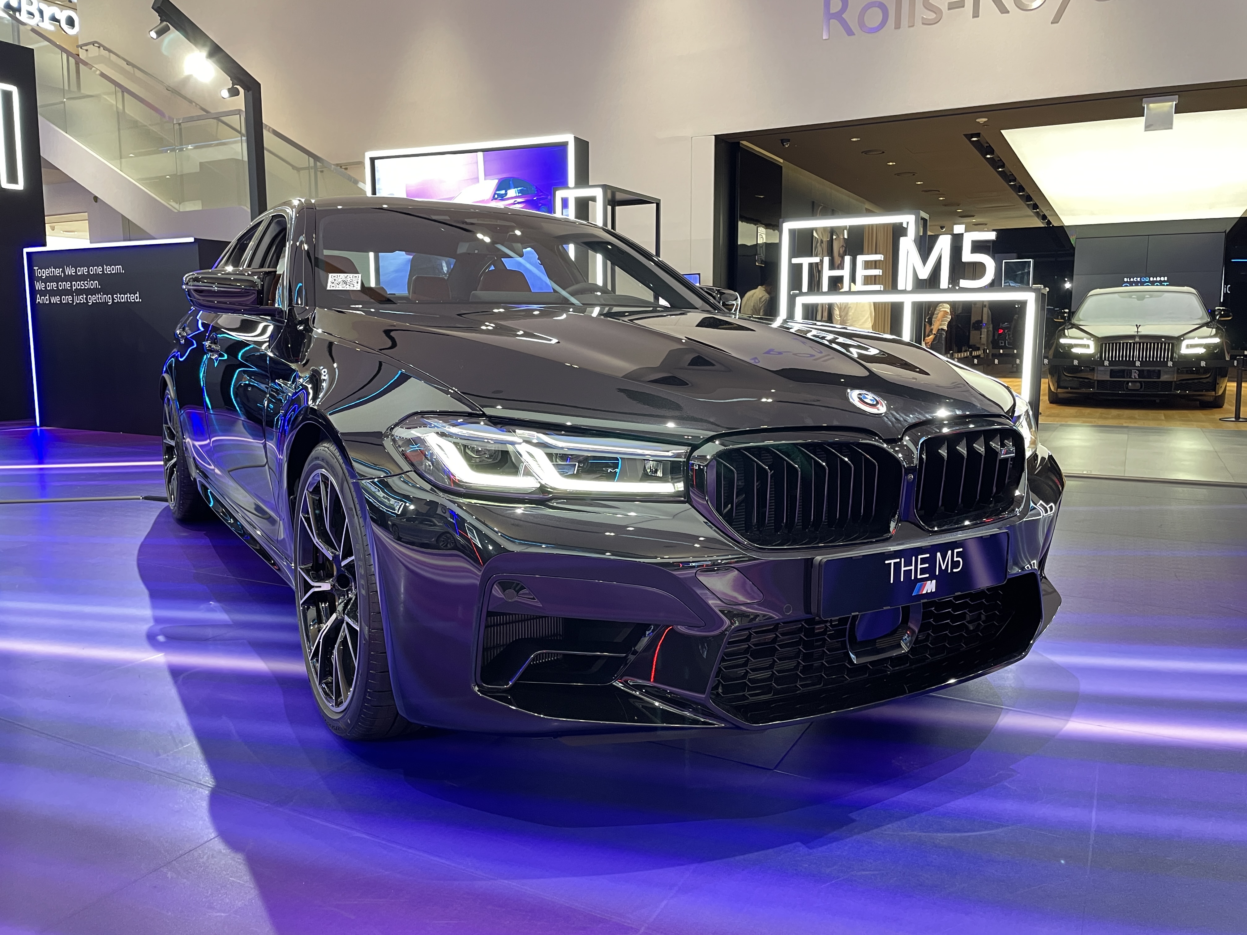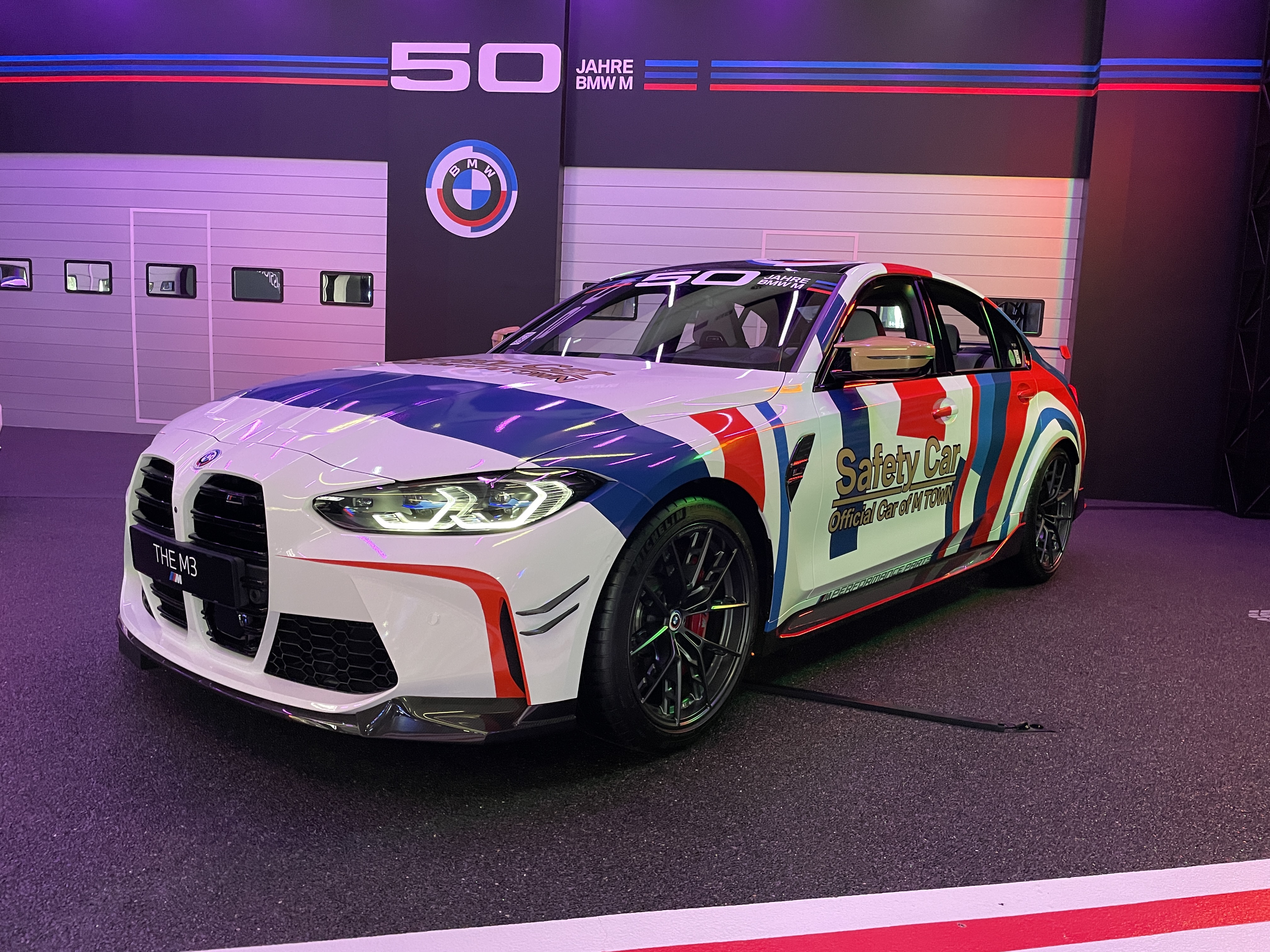 M Street 에 있는 50주년 기념 랩핑을 한 M5 차량입니다.