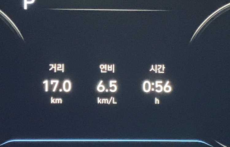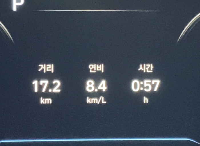 교통 체증으로 평균속도가 낮은 것도 있지만 DPF 재생으로 인해 연비가 평소보다 많이 떨어졌습니다.