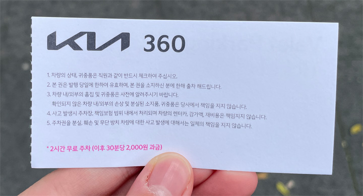 단순 관람은 1시간 까지는 따로 주차비를 받지 않습니다. 차량 상담을 하거나, 카페를 이용하면 2시간 무료라고 합니다.