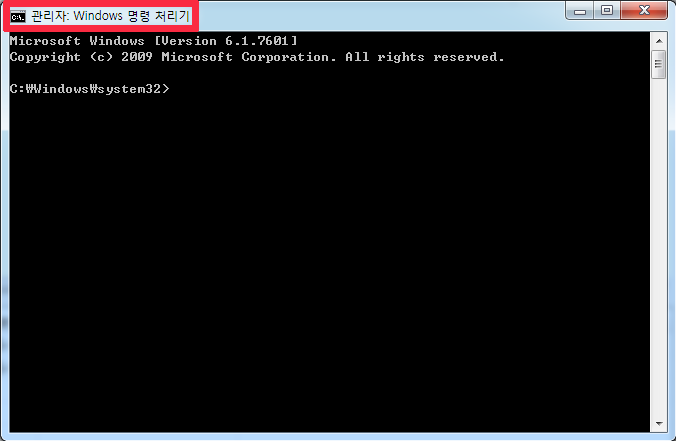 cmd 로 검색하면 쉽게 찾을 수 있습니다. cmd 로 검색 후, 마우스 우측 클릭을 하고 "관리자 권한으로 실행" 을 선택해서 실행합니다. 실행이 되면 아래와 같이 검은색의 화면이 뜨게 됩니다.