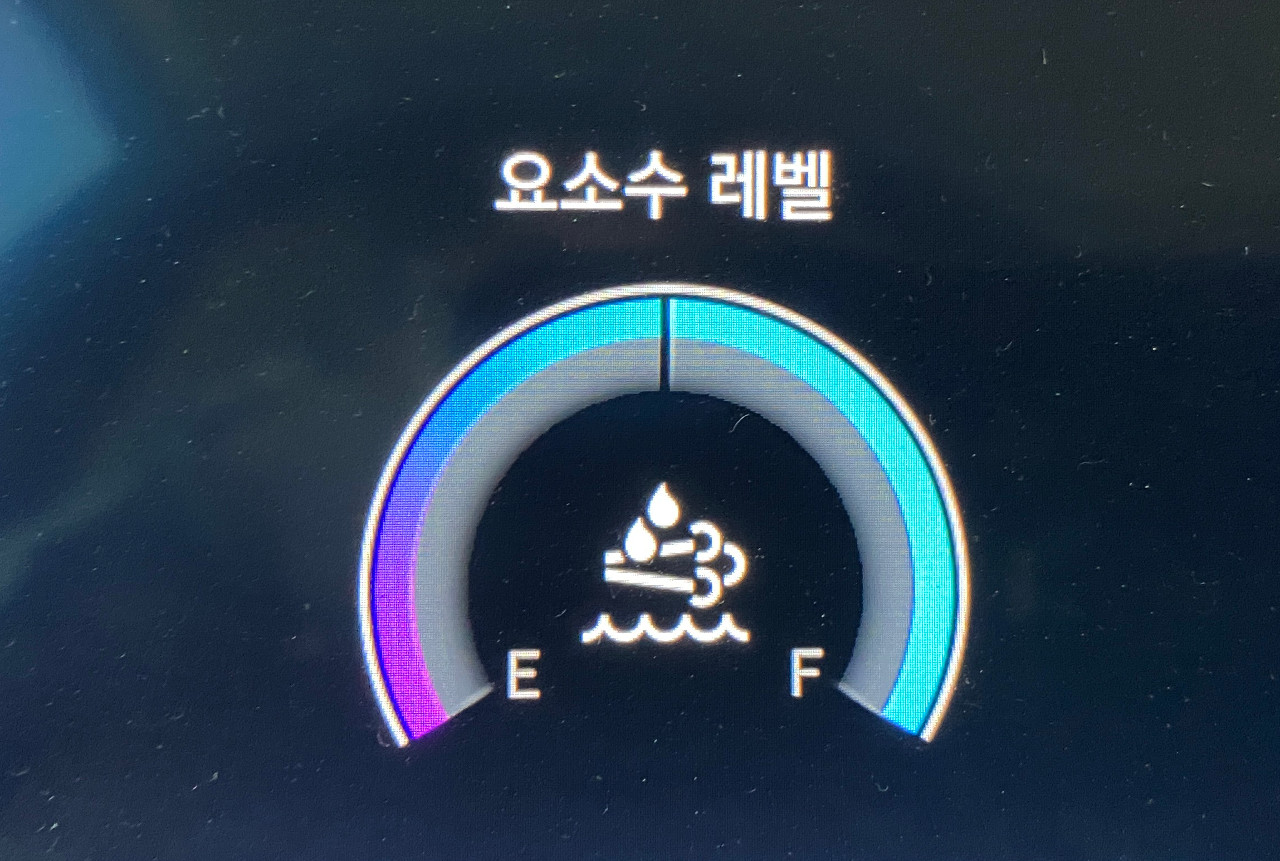 9시 방향 살짝 위에서 경고등이 점등 된 후, 10리터를 보충한 후 레벨입니다.