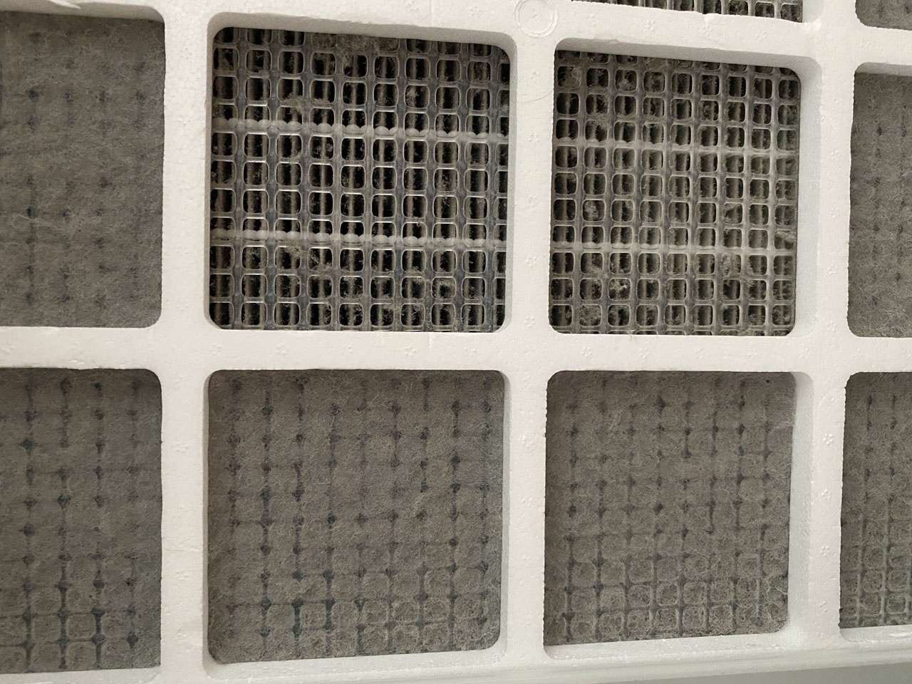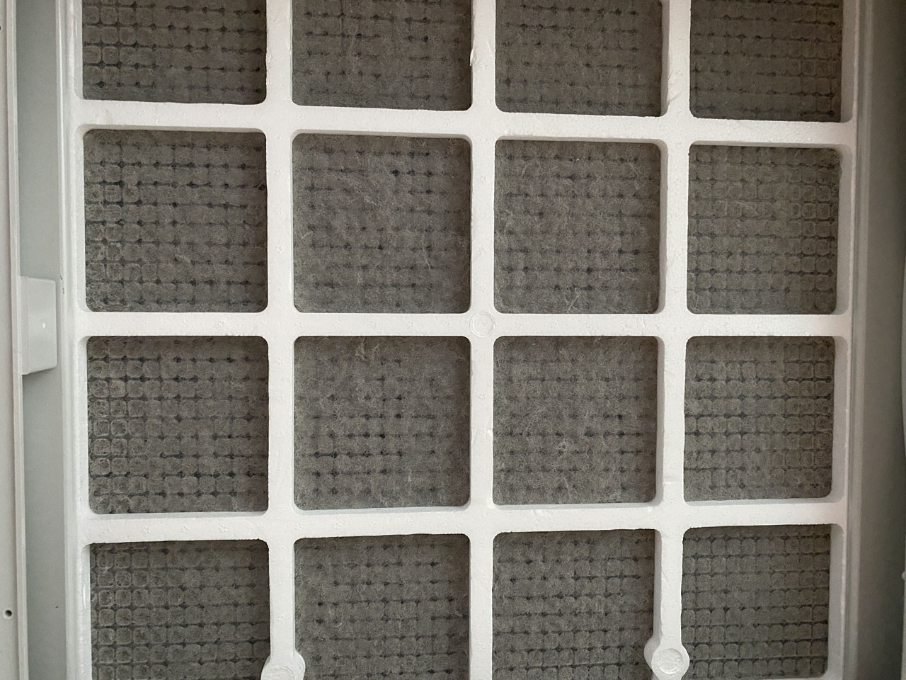 청소 전 PreMax 필터 모습입니다. 먼지가 꽤 많이 쌓여있습니다. 공기 흐름에 많은 방해가 되었을 것 같습니다.