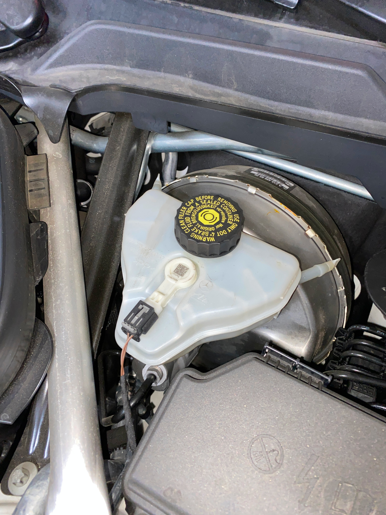 브레이크 오일 통이 보입니다. 마개를 열어주고 필터를 빼내면 작은 구멍이 보입니다. 이곳에 수분 측정기를 넣을 수 있습니다.
