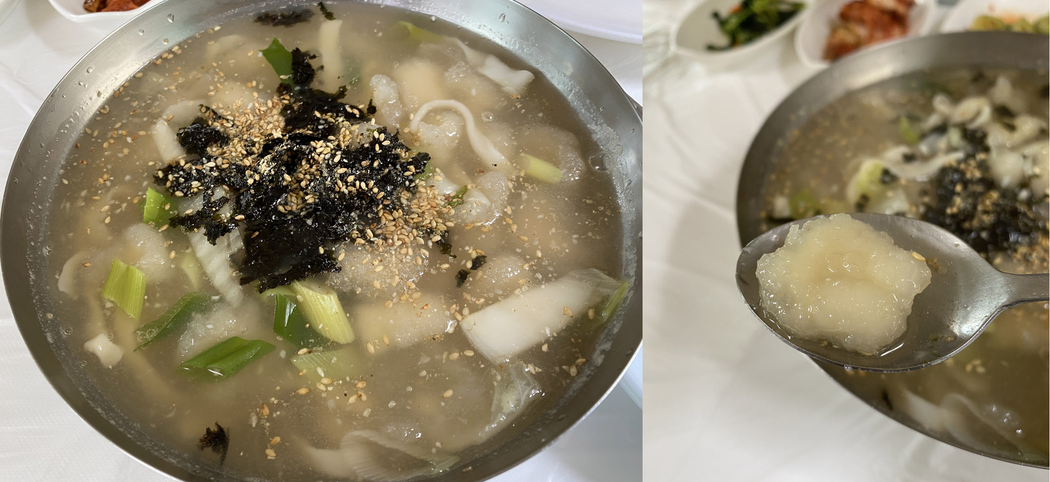 비빔밥을 먹고나서 조금 있으니 옹심이가 나옵니다. 감자옹심이는 "옹심이 칼국수" 또는 "옹심이만" 으로 시킬 수 있는데, 저는 옹심이만으로 시켰습니다. 쫄깃한 옹심이~