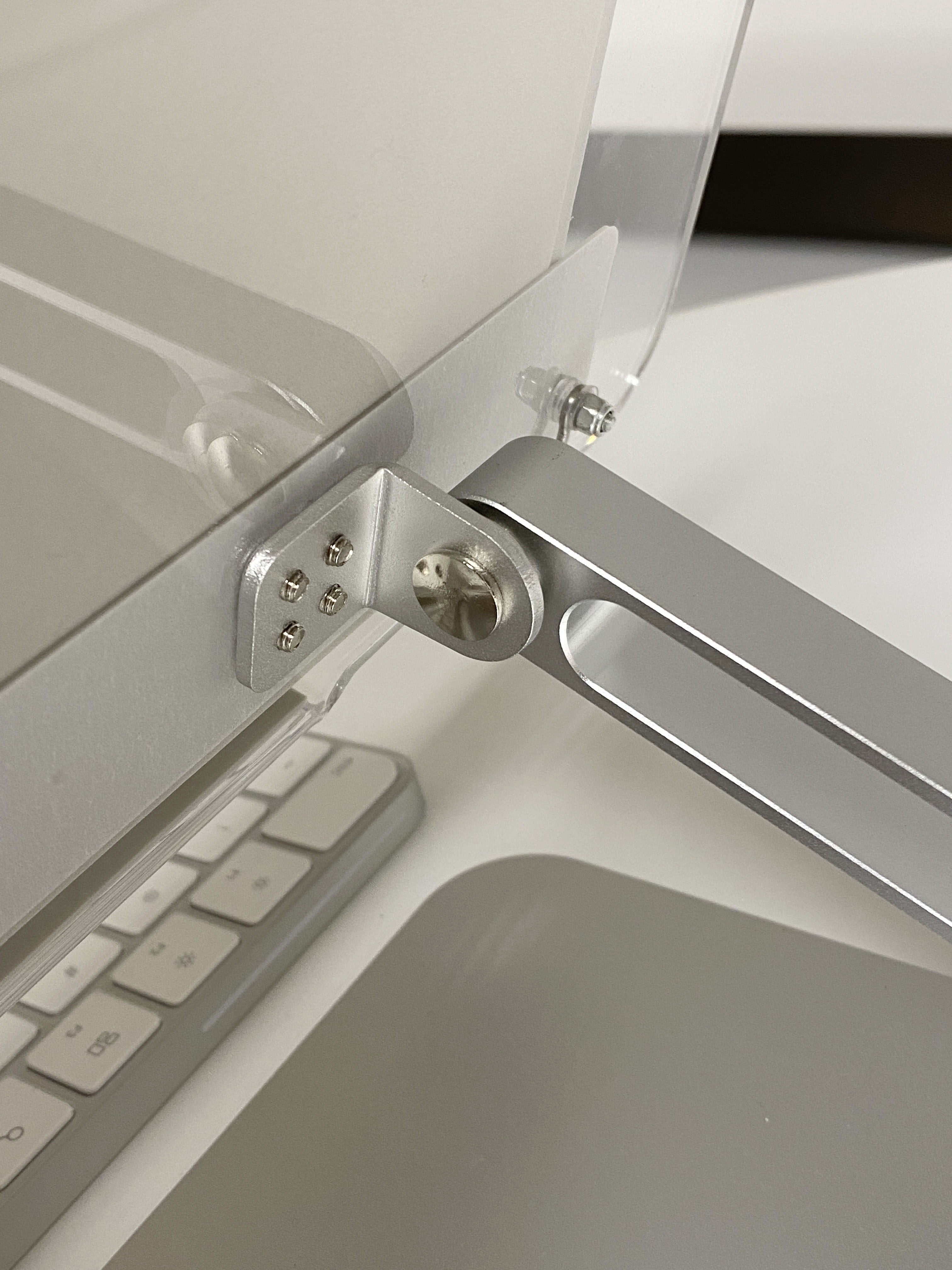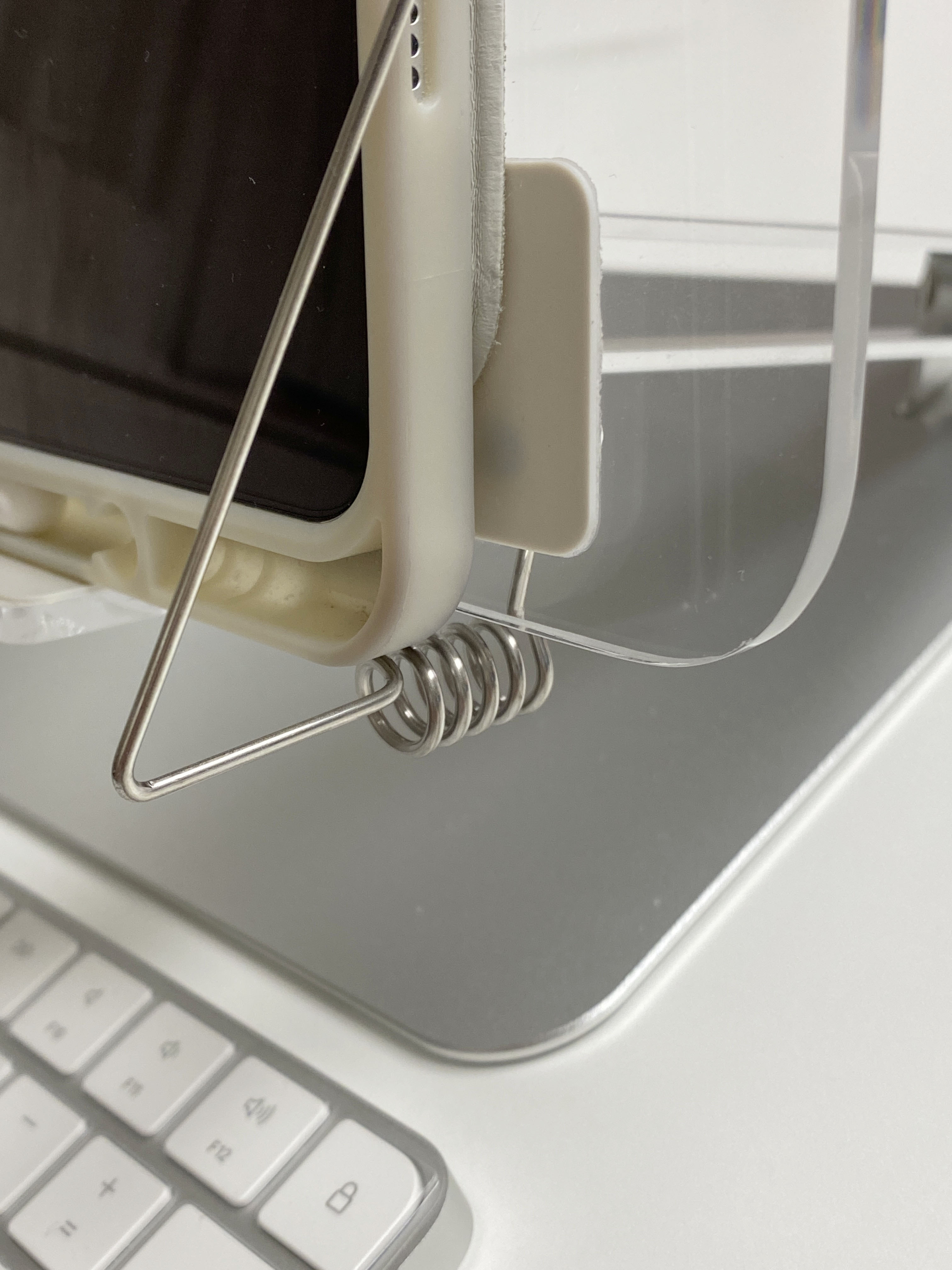 높낮이 및 각도 조절이 자유롭고 최대 4kg까지 사용가능하니 좋은 것 같습니다. 높낮이나 각도 조절할 때는 어느 정도 힘을 줘야 합니다. 아이패드나 노트북을 올렸을때, 스르륵 내려오는 문제는 없을 것 같습니다.