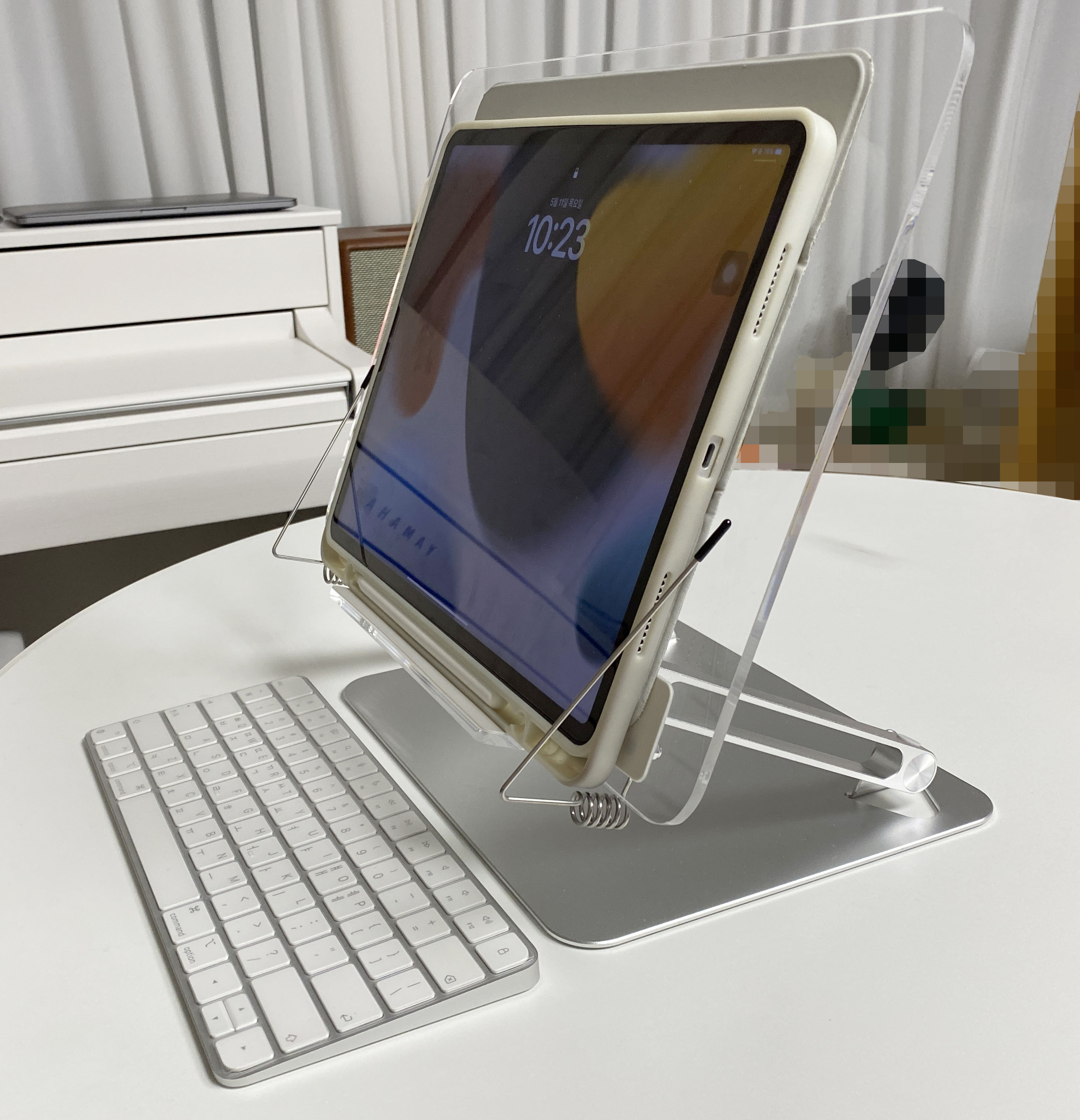 아이패드용 매직키보드를 구매할 까도 고민했지만, 높낮이나 각도 조절이 더 자유로운 이 조합으로 선택했습니다.
