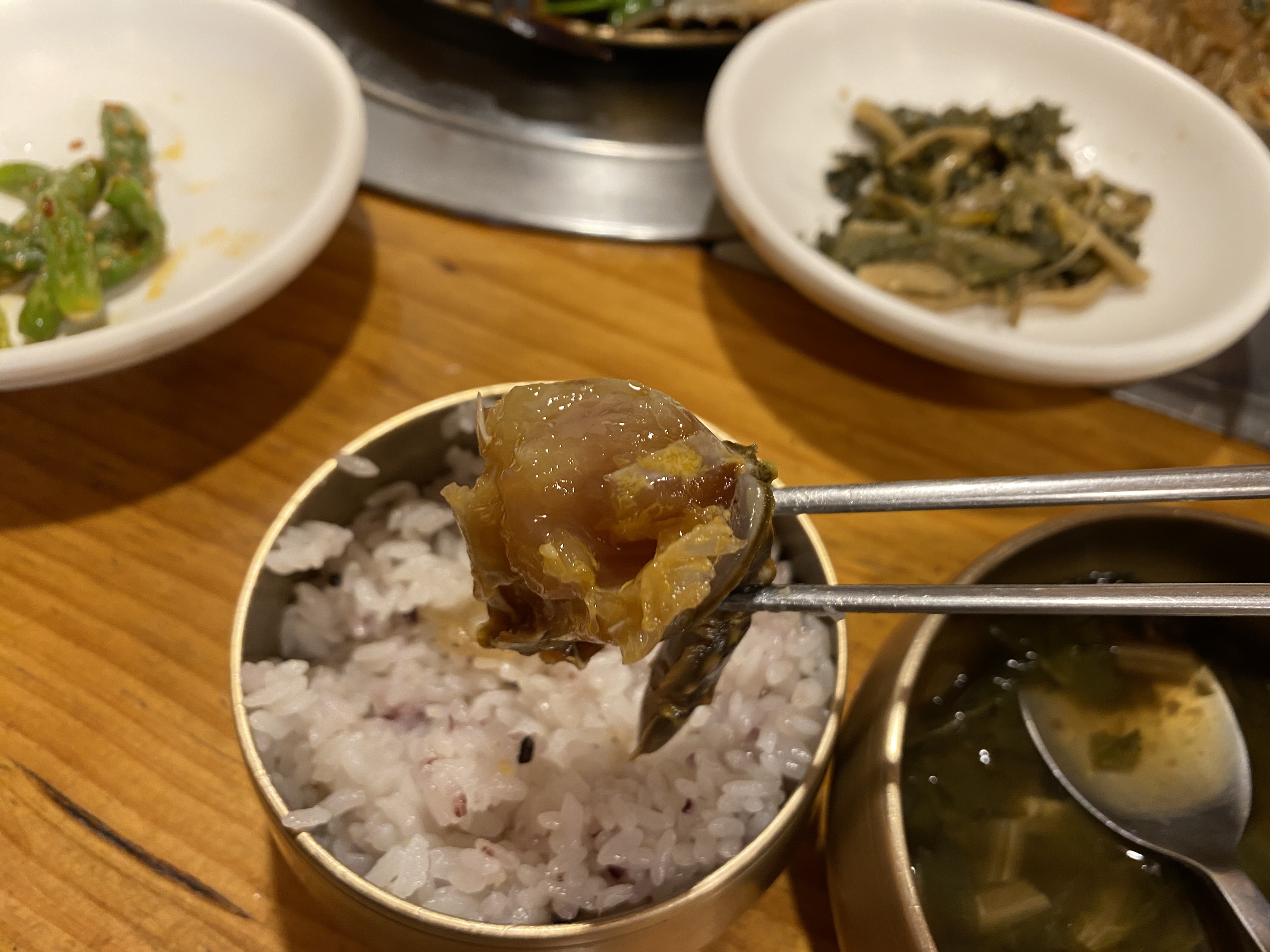 게장이 짜지는 않았지만 양이 많아서 추가로 밥을 주문해서 비벼 먹었습니다. 고소하고 맛있습니다.