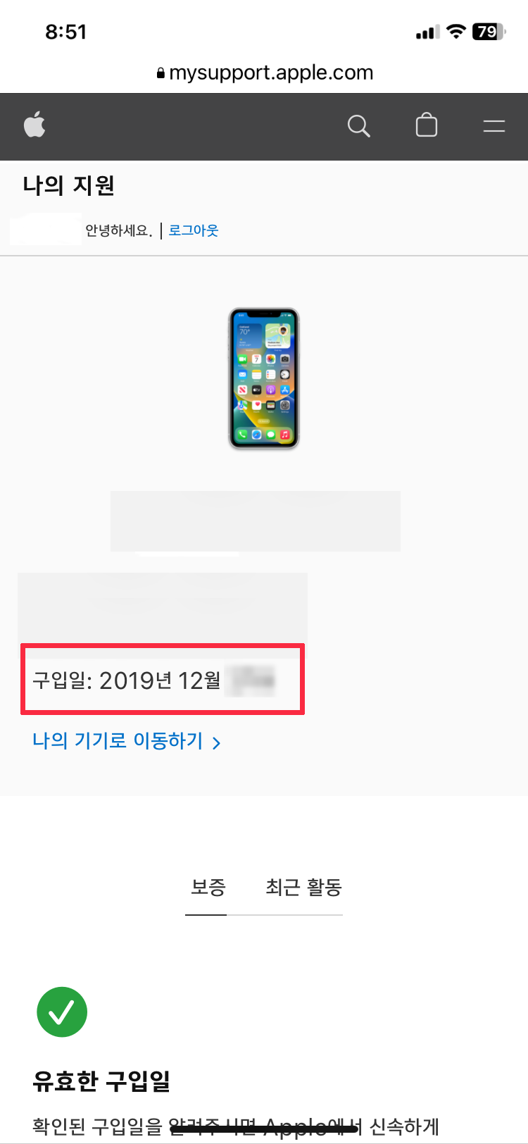 애플 제품은 구매일을 기준으로 무상 AS를 제공하기 때문에 애플에 등록된 구매일이 중요합니다.