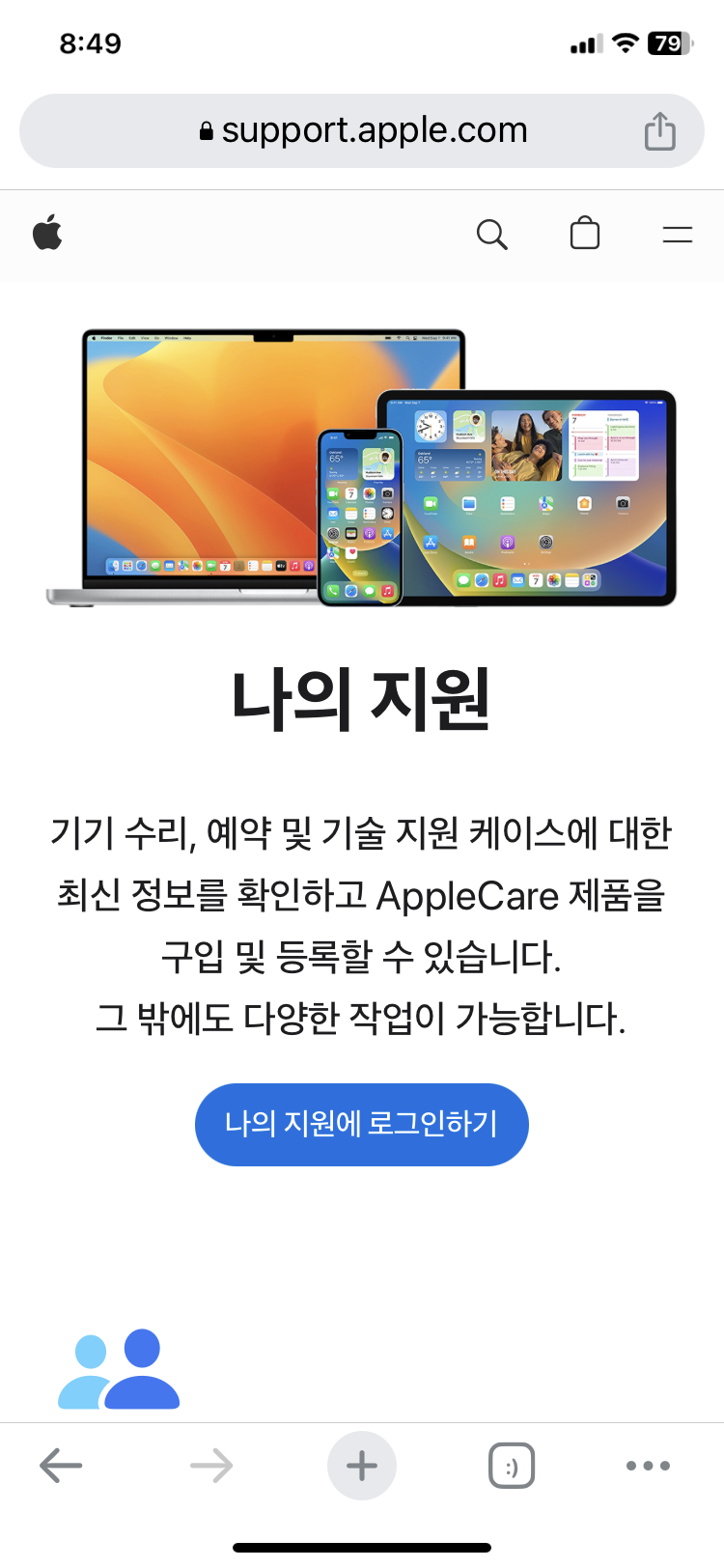 그리고 아래쪽에 "나의 지원에 로그인하기"를 터치해줍니다.