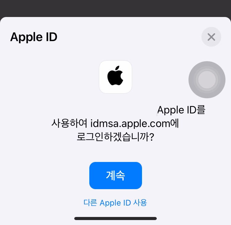 아이폰에서 접속하면 아래와 같이 로그인하겠냐는 화면이 뜨고, "계속" 을 눌러주면 페이스 ID로 간편하게