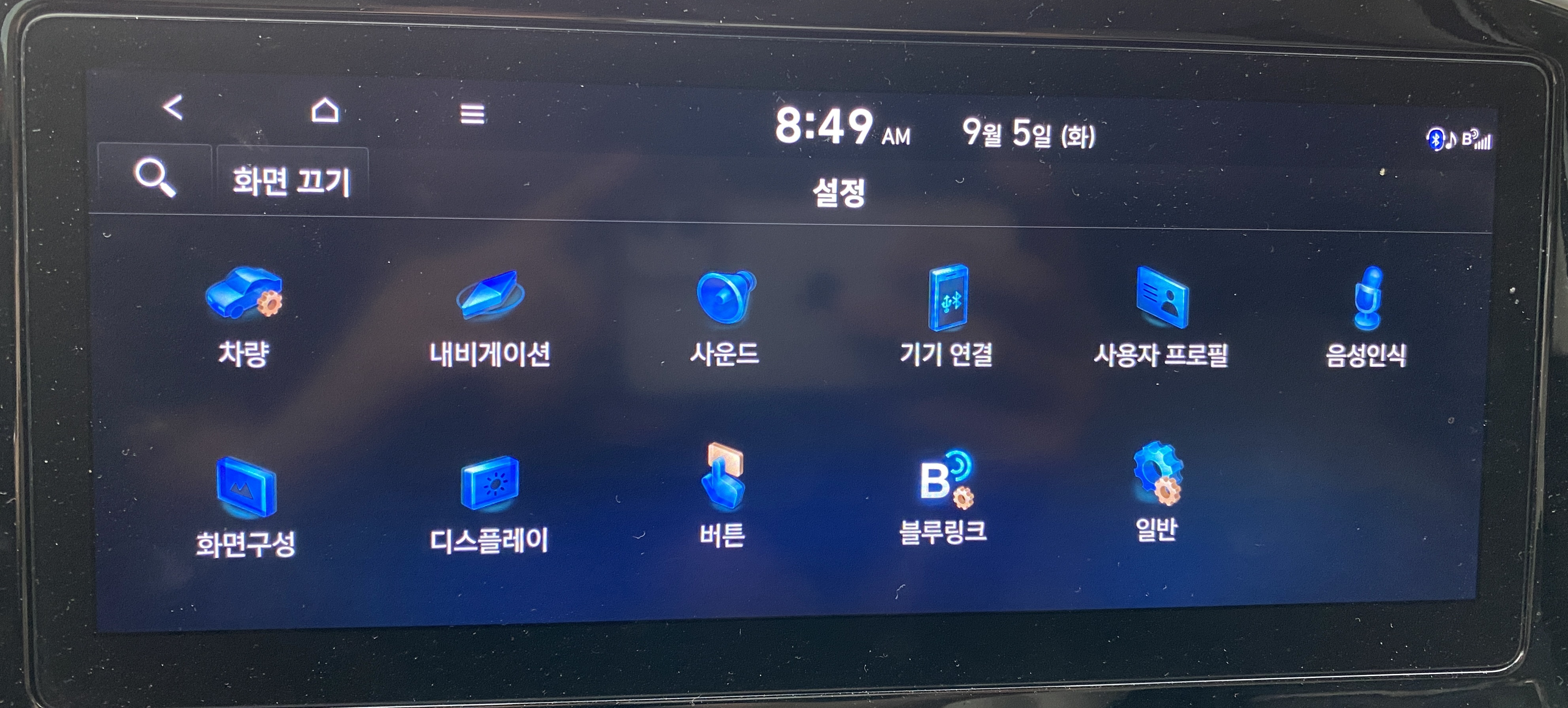 1. 홈으로 이동해서 오른쪽 아래의 "설정" 을 터치합니다.