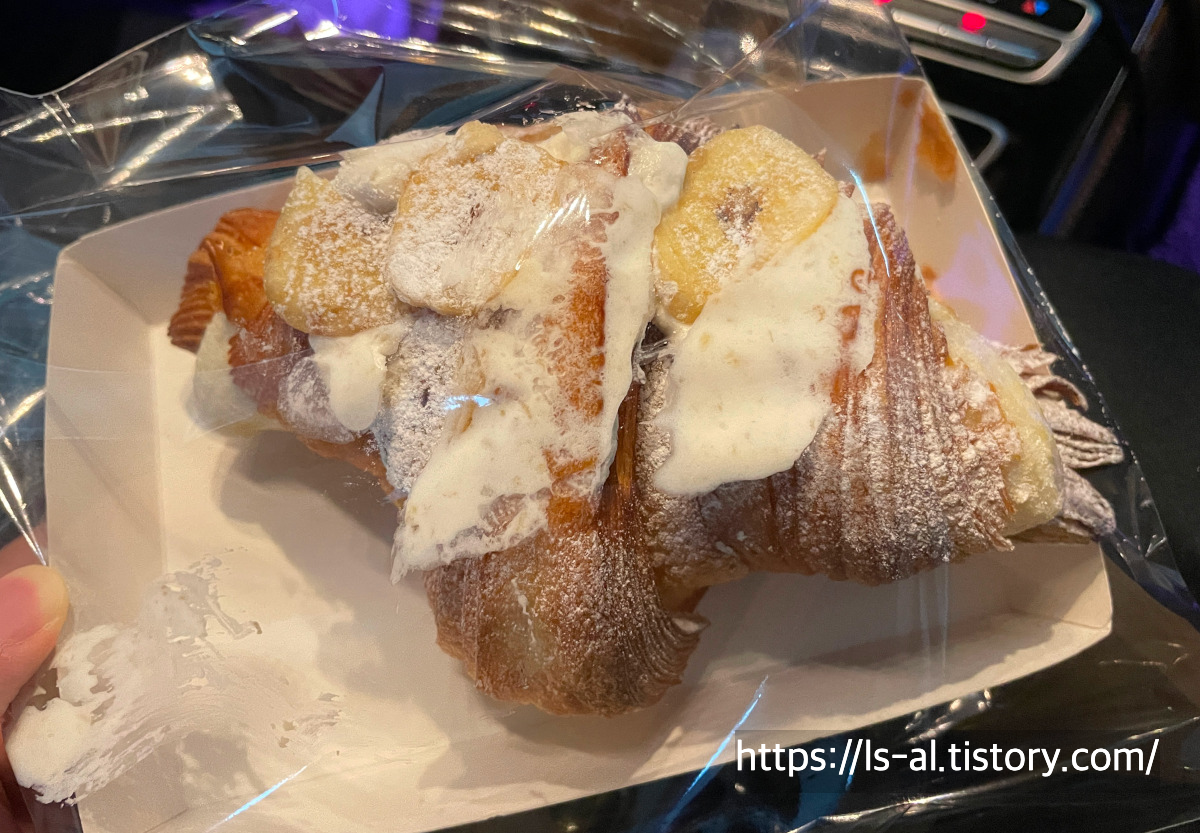 바나나크림크로와상 입니다. 이름에 걸맞게 바나나 반개를 잘라서 안에 넣었습니다.