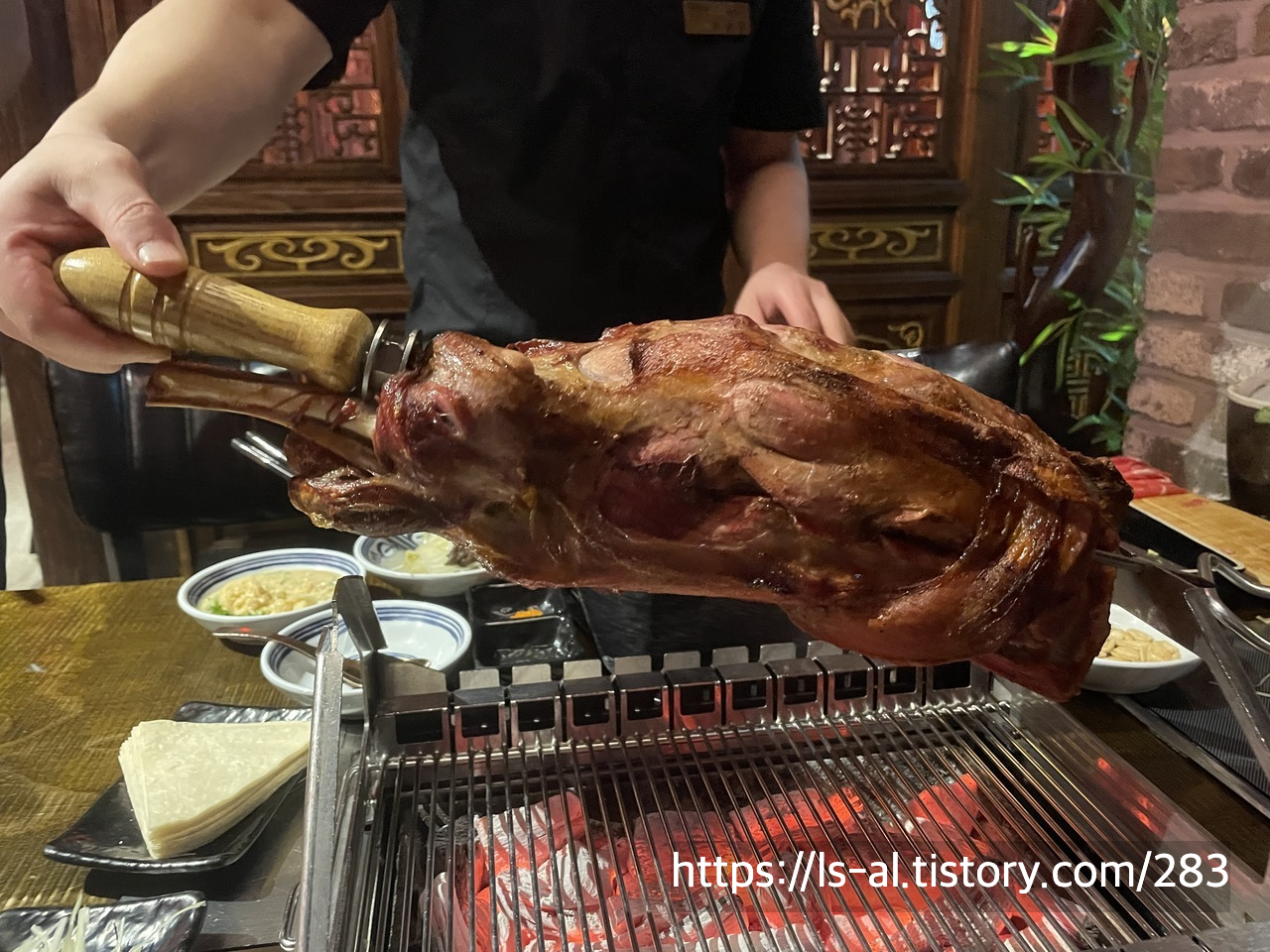 양꼬치는 자주 먹어보아서 양다리 바비큐도 비슷한 맛이겠지... 하고 먹어보지 않았었는데 이번에 먹어 보았습니다.