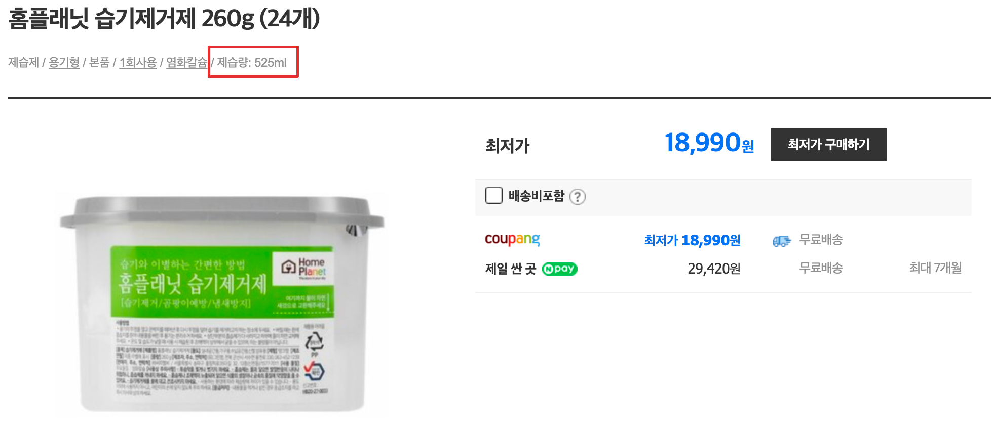 유명한 물먹는 하마 이런거 아니고, 쿠팡에서 구매한 홈플래닛 습기제거제입니다.