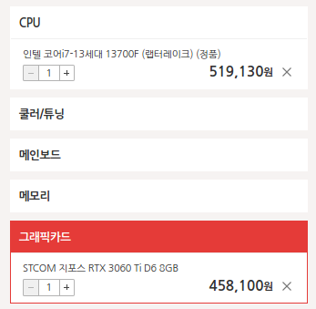 i7-13700F + 3060Ti 조합의 완본체를 97만원에 구매했으니 가성비는 좋은 제품입니다.