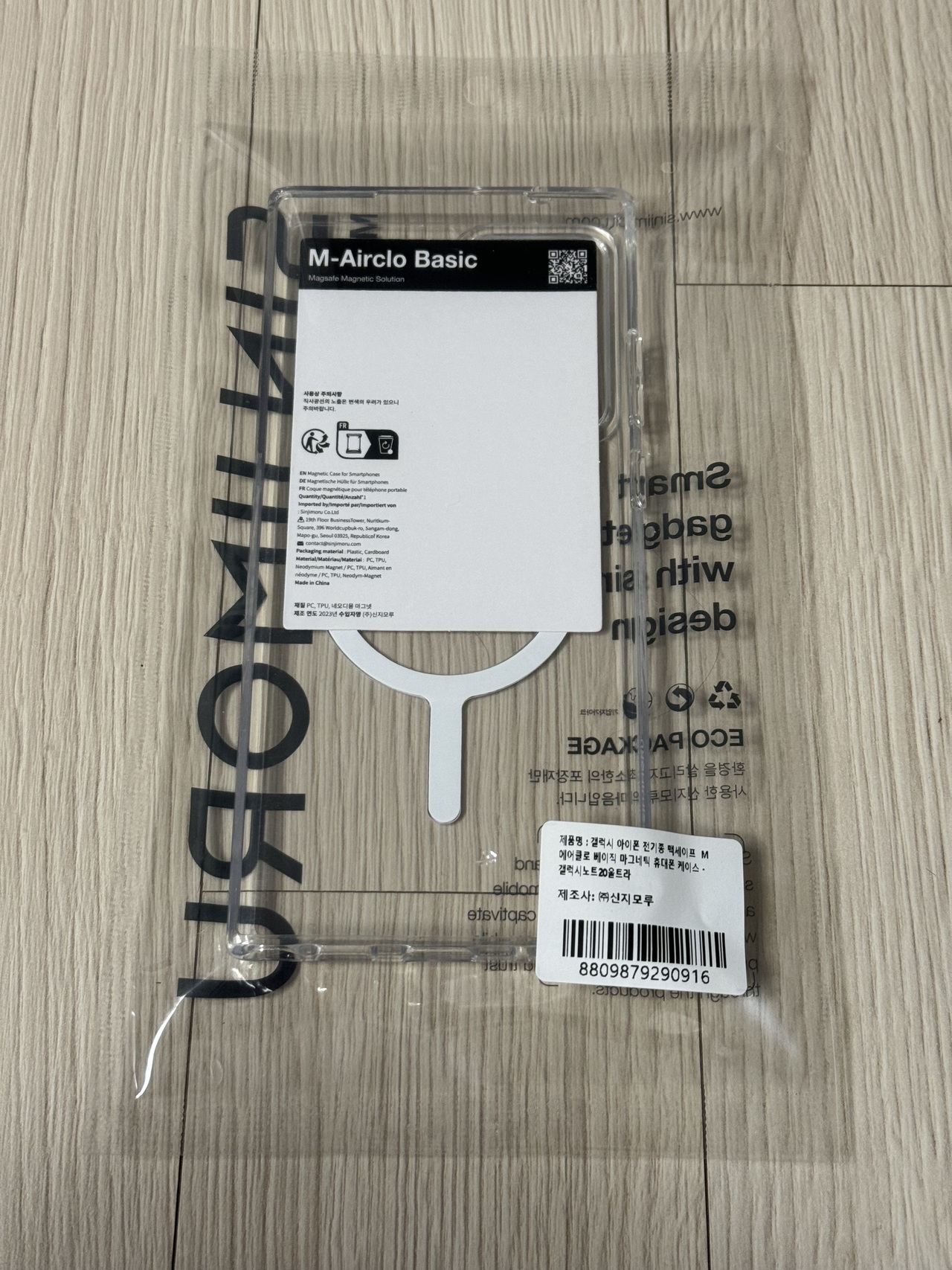 신지모루 맥세이프 M 에어클로 베이직 케이스와 로랜텍 맥세이프 보조배터리 10000mAh 입니다.