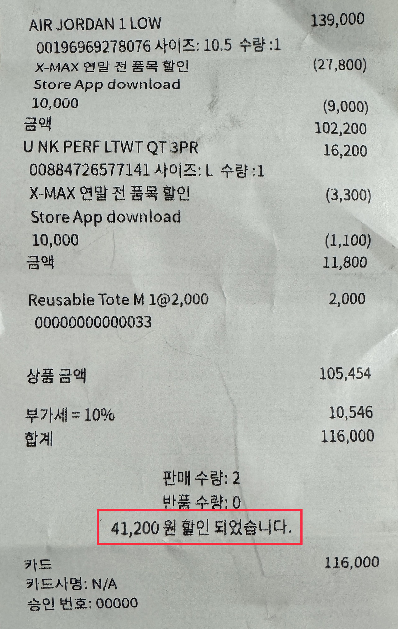 영수증을 보니, 나이키 앱을 다운로드하면 주는 쿠폰같습니다.
