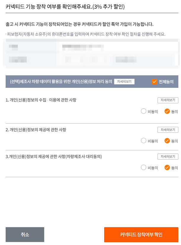 커넥티드 카 기능이 있으면 추가로 할인을 받을 수 있으니, 조회해보고 적용하시기 바랍니다.