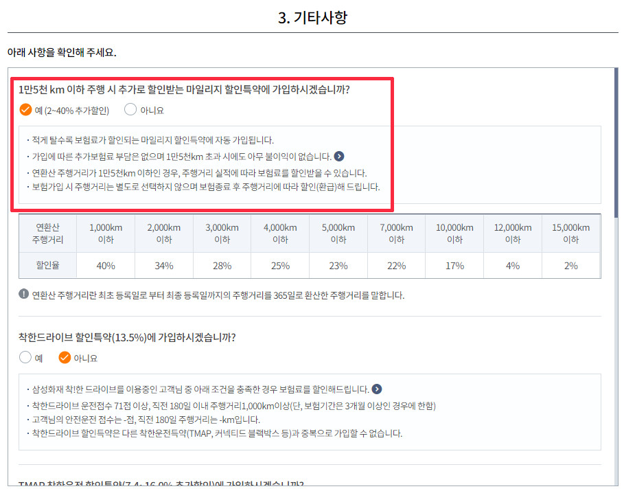 주행거리가 짧은 사람의 경우 꽤 많은 할인을 받을 수 있습니다.