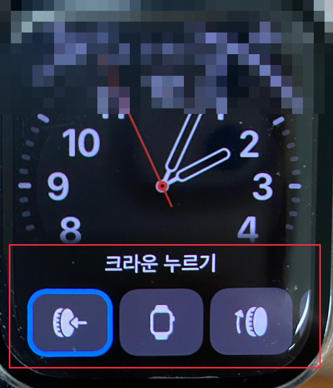 시계화면이 켜질때 화면 가장 자리 테두리 부분에 파란색(기본색상) 타원이 나타나면서 AssistTouch가 켜져있음을 알려주는데, 이 상태에서만 해당 기능을 사용할 수 있습니다.