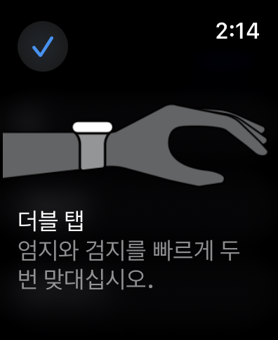 시계줄은 너무 느슨하지 않게 착용하고, 더블탭 할때 엄지 검지 외에 다른 손가락은 최대한 움직이지 않게 하면 더욱더 인식이 잘됩니다.