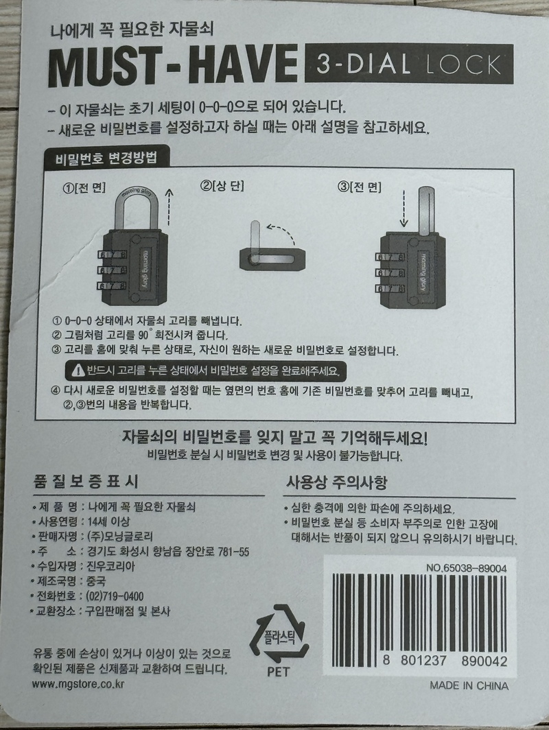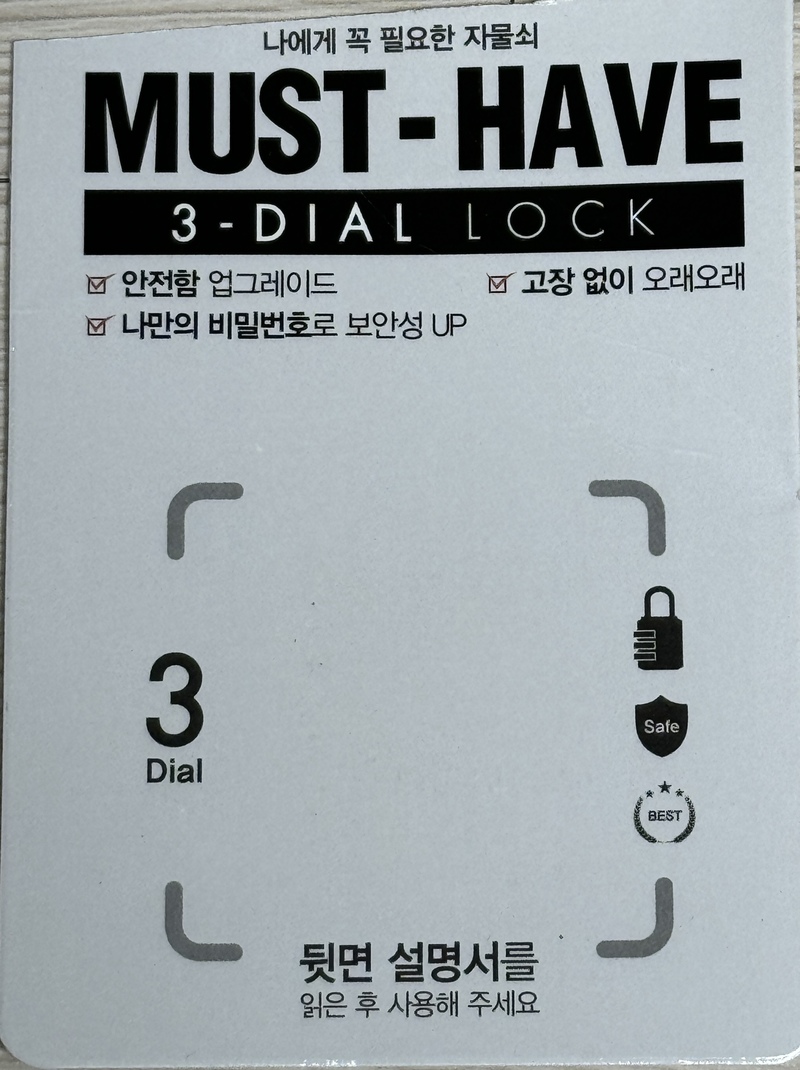 3자리 숫자 비밀번호로 잠그게 됩니다.