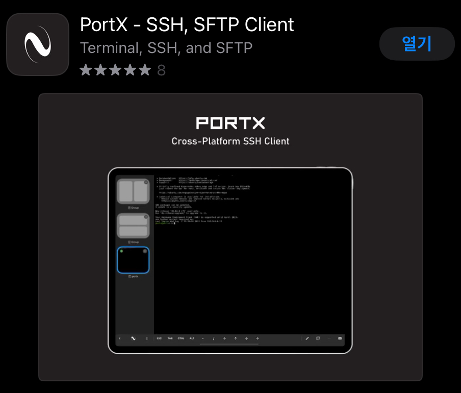 처음 실행하고 어떻게 호스트를 추가하나 좀 당황했는데, 화면 좌측하래 PortX 아이콘을 클릭해서 추가하면 됩니다. 추가한 호스트 이름을 터치해주면 연결이 됩니다.