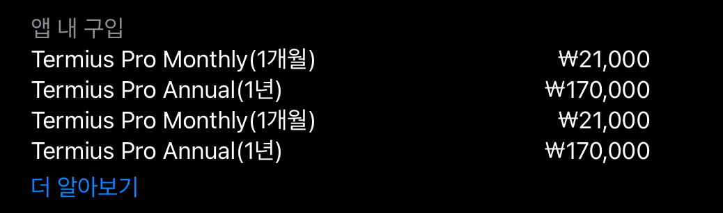 아이폰에서는 Terminus 를 무료로 사용했었는데, 아이패드에서도 사용하려고 하니 무료로는 14일만 사용 가능하고 구독을 해야만 했습니다. Terminus는 한 디바이스에 대해서만 무료로 이용 가능합니다.