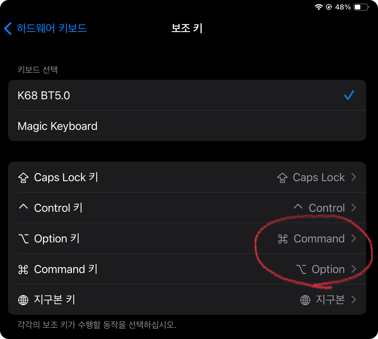 윈도우용 자판 키보드를 맥관련 기기에서 사용하다 보니 몇가지 설정은 해주어야 합니다.
