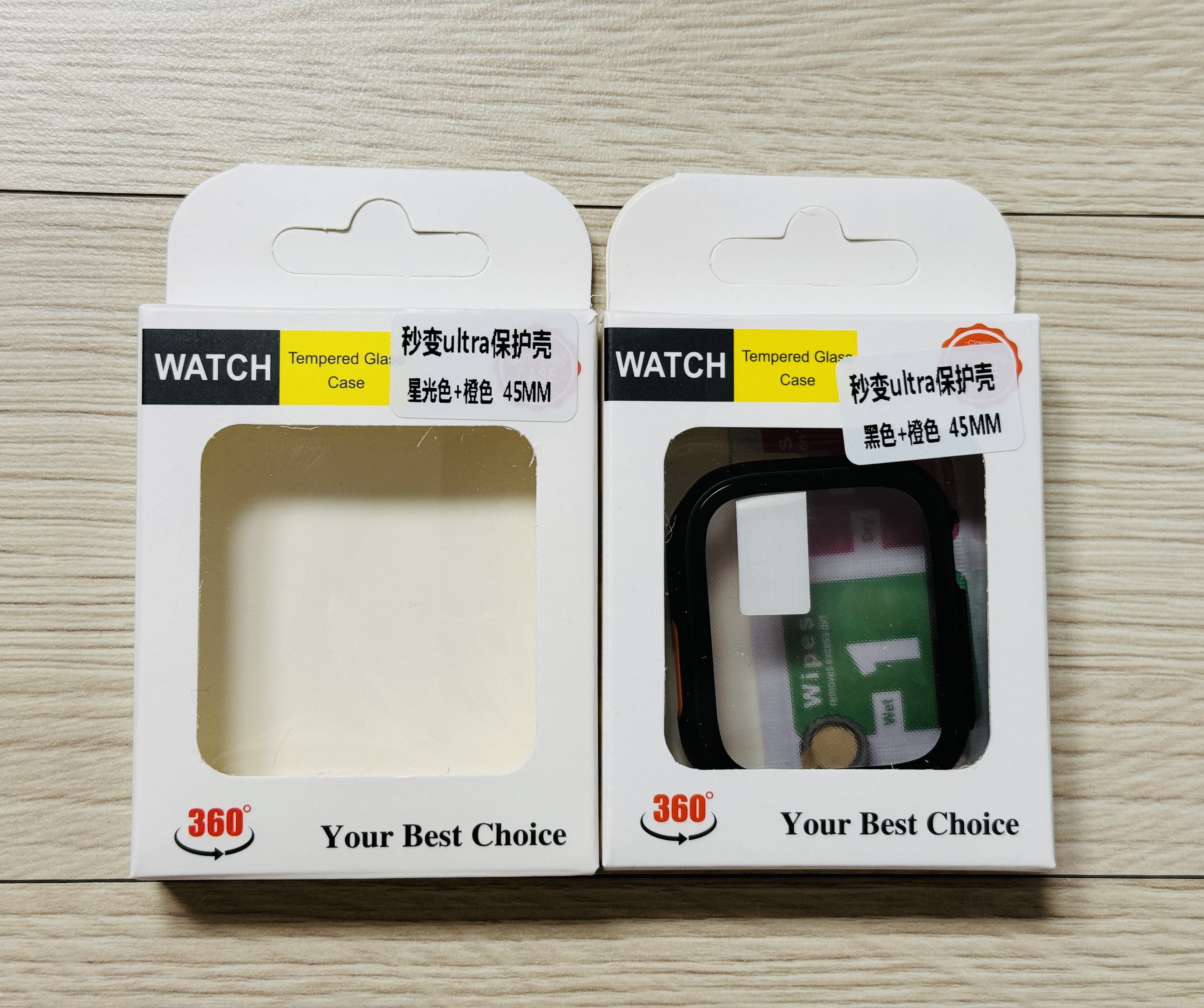 애플워치 울트라 스타일의 풀커버 케이스로 두개가 한 세트입니다.
