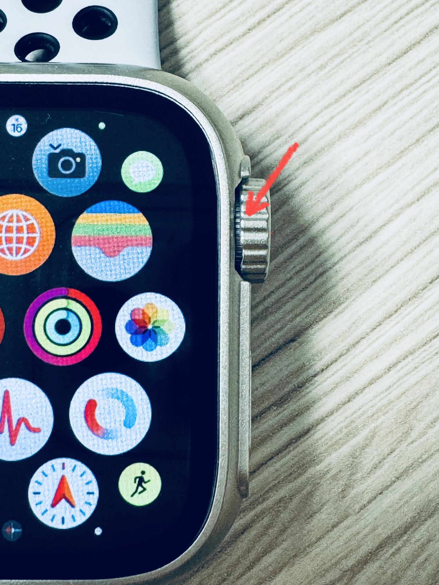 디지털 크라운에 새로운 크라운을 붙이는데 아래 사진에서 보시면 원래 크라운이 살짝 보입니다.