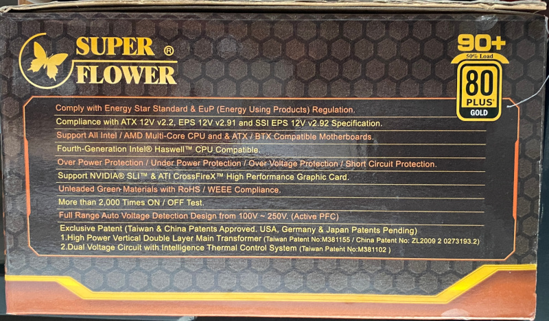 파워는 소비전력을 조금이나마 줄여보고자 SUPER FLOWER의 80PLUS GOLD 인증 제품을 사용하고 있습니다.