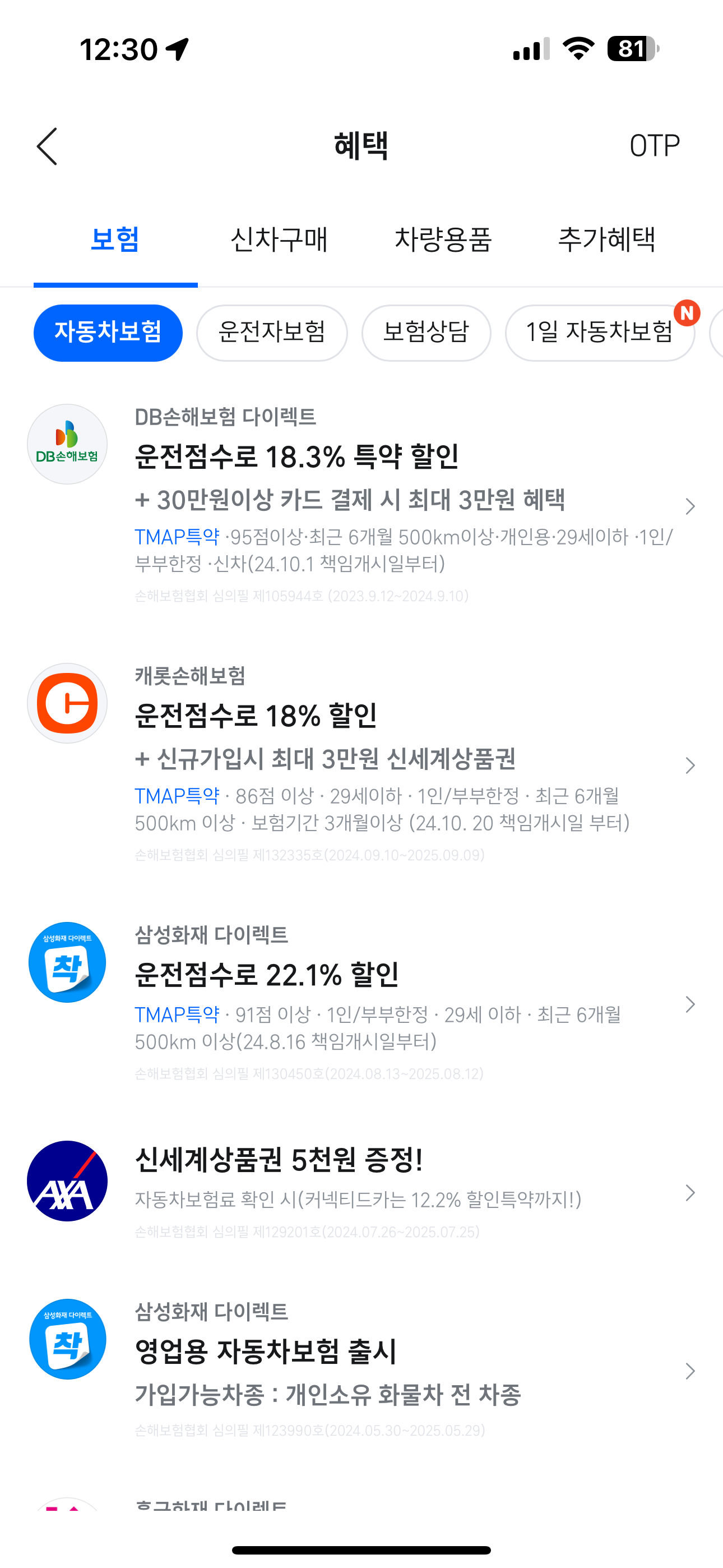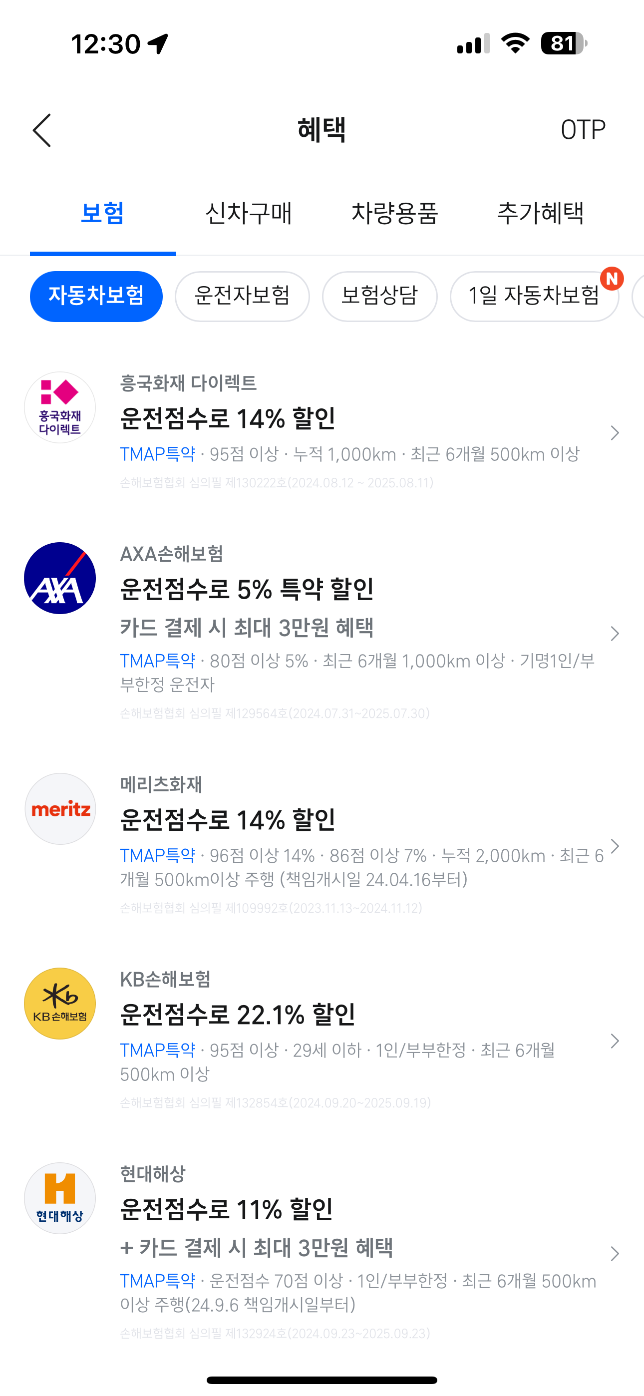 점수 조건만 맞추면 몇 만원씩 할인 받을 수 있어서 좋은 특약이었습니다.