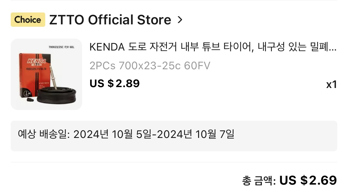 켄다 700x23C/25C 튜브입니다. 그냥 가장 저렴한 걸로 구매했습니다.