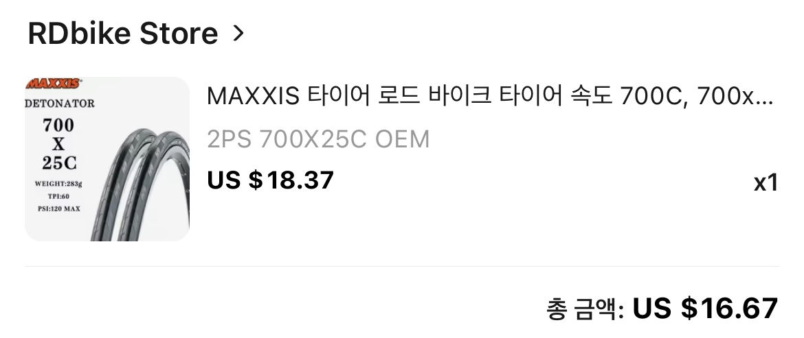 기존에는 23C 타이어였는데, 승차감이 더 좋다고 해서 25C로 구매했습니다.