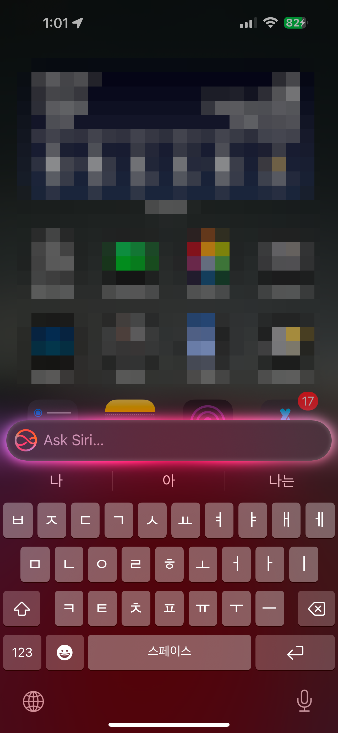 말하기 곤란한 상황에서는 화면 하단을 두번 탭하면 텍스트로 Siri를 사용할 수도있습니다.