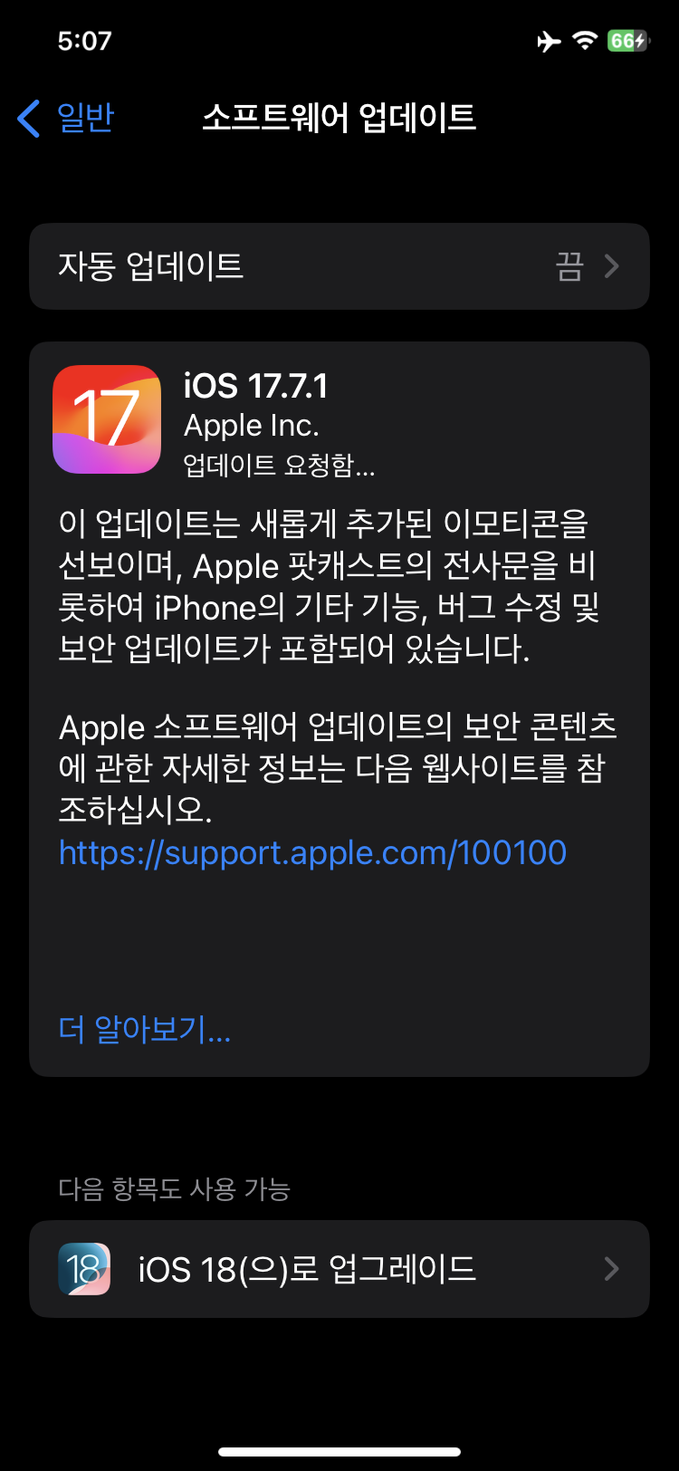 iOS 버전이 낮아서 그런게 아닌가 하는 생각이 들었습니다. 그래서 iOS 16에서 17로 업그레이드 해보기로 했습니다.